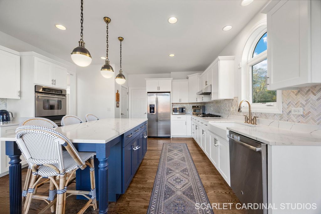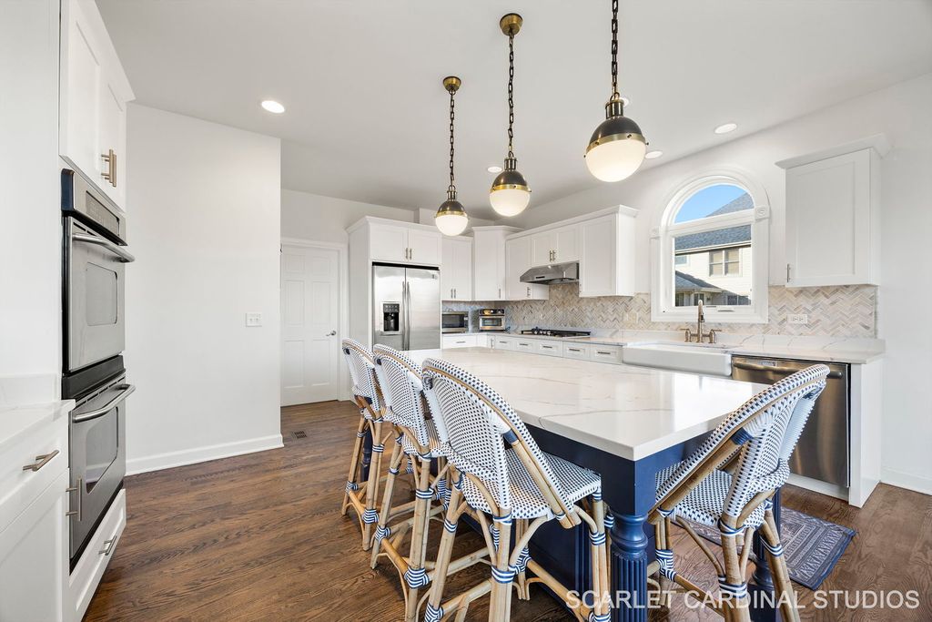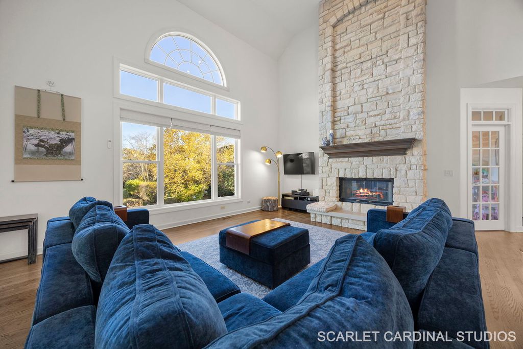 Custom-built Airhart home offering over 5,000 square feet of beautifully finished living space! The main level features a formal living and dining room with extensive woodwork and gleaming hardwood floors that flow seamlessly throughout. The chef's kitchen has been beautifully renovated with stainless steel appliances, a farmhouse sink, a large island with seating, quartz countertops, and custom soft close shaker cabinetry. An adjacent breakfast room opens to the deck for easy indoor-outdoor dining. At the heart of the home, the dramatic two-story great room showcases a stunning floor-to-ceiling stacked stone, double-sided fireplace that also warms the cozy office. Upstairs, the primary suite is a private retreat with a tray ceiling and a spa-like bath complete with dual vanities, soaking tub, and separate shower. Enjoy an expansive walk-in closet with plenty of extra storage space. The second bedroom boasts a soaring vaulted ceiling with large windows, including an elliptical window, a walk-in closet, and private bath. Bedrooms 3 and 4 also include large closets, and share access to another full bath with separate vanities. Downstairs, the walkout basement provides even more living space, including a spacious lower level living room with fireplace, a rec room, a wet bar, and a full bath. Sliding glass doors lead to the back patio, creating a perfect flow for indoor-outdoor entertaining. The backyard backs to the nature preserve, offering open views and a private, tranquil retreat from everyday life. Enjoy the brick paver patio with built-in firepit, and convenient access to the main floor deck, ideal for gatherings or quiet evenings at home. An attached 3-car garage ensures plenty of room for vehicles and storage. Brand new Pella windows throughout the first floor. Both HVAC systems were replaced in 2023. Roof 2020-2021. Brand new washer and dryer. Perfectly located near Downtown Naperville and Downtown Lisle, this home offers easy access to parks, shopping, and dining, including Amazon Fresh, Costco, and H-Mart. Just minutes from I-88 and the Metra stations in Naperville and Lisle, commuting is a breeze. Students attend award-winning Naperville District 203 schools. Welcome home!