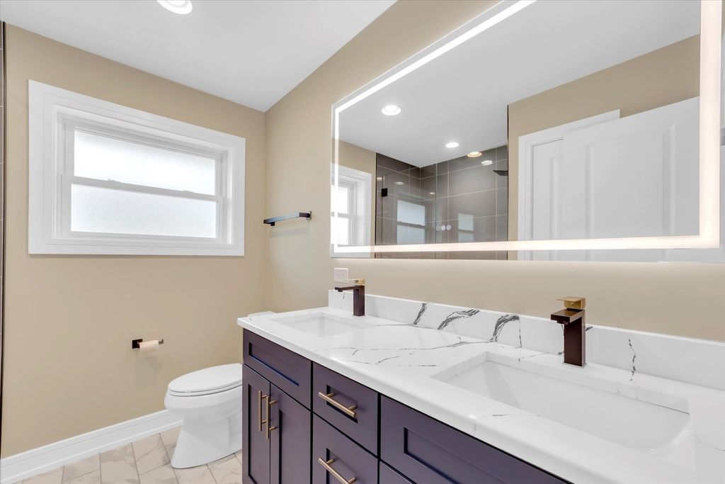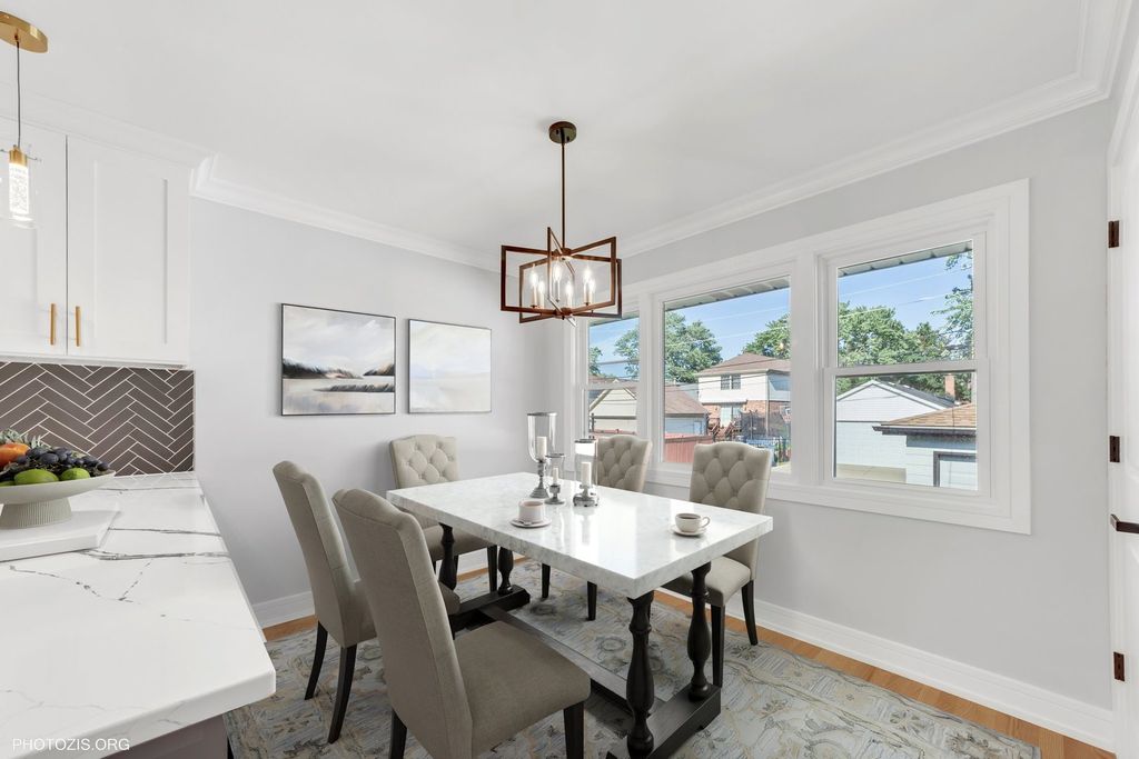 Completely Renovated 5-Bedroom Brick Home in Oak Lawn! Move right in to this beautifully updated 5-bedroom, 2-bath home offering style, comfort, and modern convenience. The main level features gleaming hardwood floors and an open, inviting layout. The elegant, fully remodeled kitchen is equipped with 42" cabinets, high-end stainless steel appliances, quartz countertops, and a designer backsplash. Both bathrooms are fully updated with contemporary finishes and quality fixtures. The spacious finished basement boasts durable vinyl flooring, additional living space, and extra bedrooms - perfect for guests, office, or recreation. Enjoy peace of mind with all-new plumbing, new energy-efficient windows, brand-new HVAC system with central air, and many other recent improvements. Situated in a desirable Oak Lawn location close to schools, parks, shopping, dining, and public transportation. A true turn-key home!