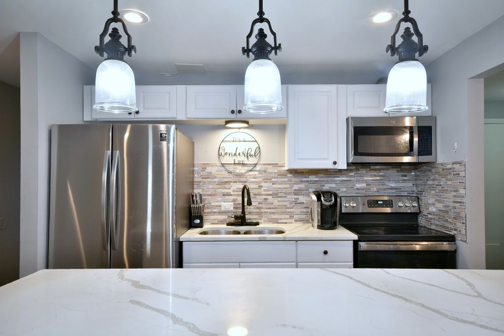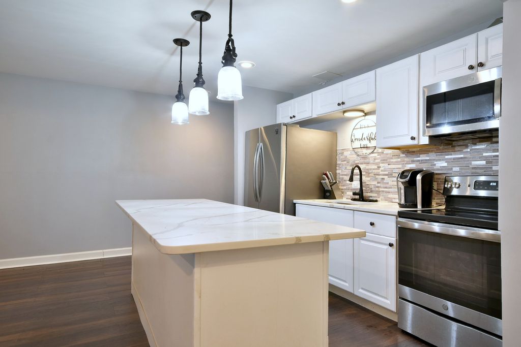 Highly Sought after End-Unit Townhome. Beautifully updated open- concept kitchen. Main floor updates include: Marble countertops with custom Island, Stainless steel appliances, New cabinets, Backsplash, Light fixtures and more. 3 bedroom 2.5 baths and a 2 car heated garage. HOA takes care of the exterior maintenance of common areas, snow removal, lawn care, and water. All units owner occupied. Needs some TLC, as-is.