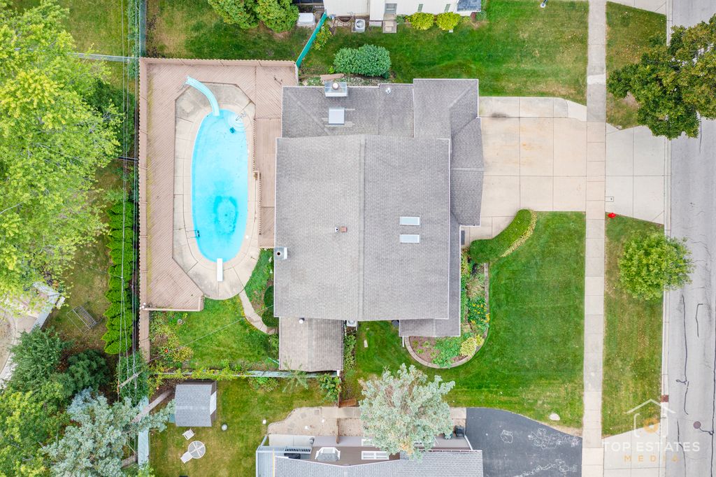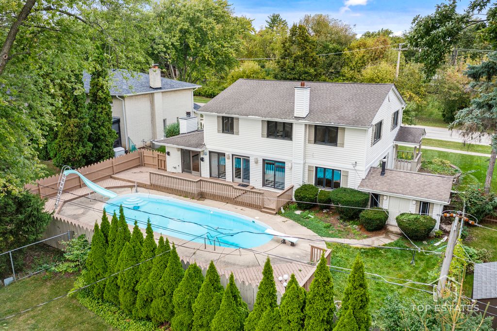 Beautiful Updated Two-Story with Built-in Pool in Prime Palatine Location attending Pleasant Hill grade school and Fremd High School! Welcome to this spacious and inviting 4-bedroom, 2.5-bath home located in one of Palatine's most desirable neighborhoods. Perfectly blending comfort and functionality, this home offers generous living spaces, a private backyard oasis with an in-ground pool, and numerous updates throughout. Step inside to find this recently professionally painted throughout gem featuring sun-filled rooms with gleaming hardwood floors and a versatile open floor plan. The large living and dining rooms flow seamlessly together, featuring elegant millwork and a bay window that fills the space with natural light. The bright and spacious kitchen offers crisp white cabinetry and stainless steel appliances, with sliding doors that open directly to the deck and pool area - ideal for entertaining and outdoor living. Comfortable family room with fireplace, skylight, and backyard access creates the perfect gathering spot. Upstairs, a unique open loft with built-in shelving offers the ultimate work-from-home or study area. Four additional spacious bedrooms upstairs provide excellent closet space, including a lovely primary suite with a private bath. The finished basement adds valuable living area with a large recreation room and storage space. Outside, enjoy your private fenced yard with a large deck and sparkling pool - perfect for summer fun and relaxation. Additional highlights include a three-car heated attached garage and a beautifully landscaped front yard. Conveniently located near top-rated schools, parks, downtown Palatine, and Metra access - this home truly has it all!