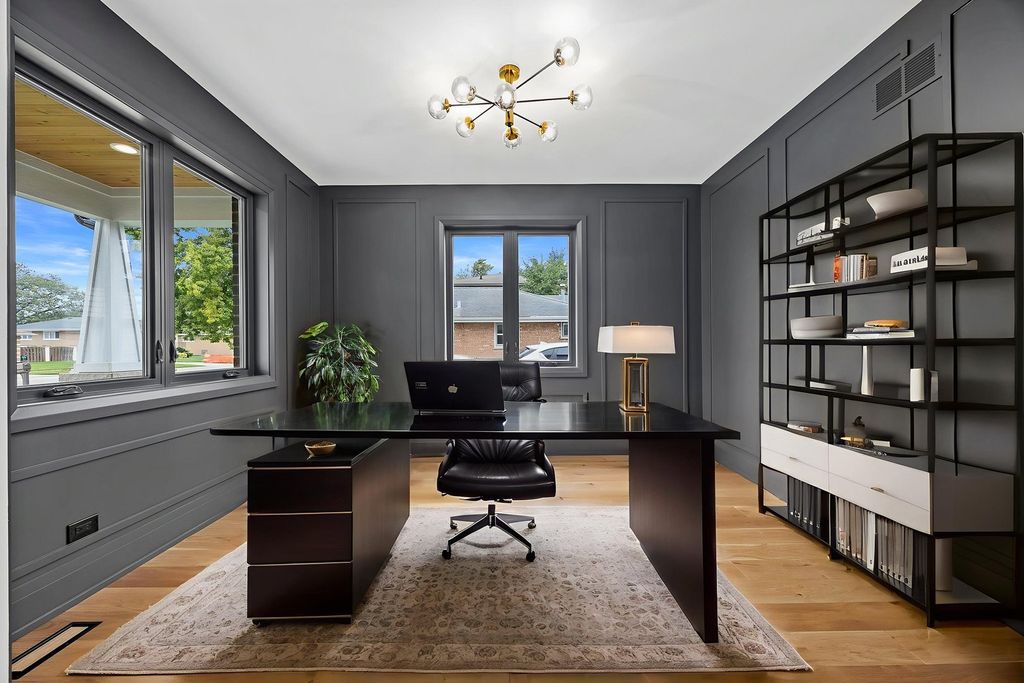 This stunning custom-built home offers the perfect blend of timeless craftsmanship and modern design. Featuring 4 spacious bedrooms, 2.5 bathrooms, and an oversized 3-car garage, every detail has been thoughtfully curated for style and comfort. Step inside the grand foyer, where an open layout flows effortlessly into the office, family room, and living room with custom built-ins, an elegant electric fireplace, and sliding glass doors that open to the backyard - perfect for entertaining or relaxing. The chef's kitchen is a true showstopper, showcasing custom rift-cut cabinetry, an oversized quartz waterfall island, and top-of-the-line LG appliances, including a range with pot filler. Elegant pendant lighting, under-cabinet lighting, and a built-in speaker system add a touch of luxury and function throughout. Beautiful white oak floors flow throughout both the main and second levels, enhancing the home's natural warmth and sophistication. Upstairs, a bright and airy staircase leads to four spacious bedrooms, two bathrooms, and an oversized laundry room. Every closet in this home features custom-built shelving, providing organization and style in every space. The primary suite is your private retreat, featuring a double vanity, rainfall shower, and soaking tub for ultimate relaxation. Experience the perfect balance of sophistication and comfort - where modern elegance meets everyday living. Love where you live - welcome HOME to Oak Lawn.