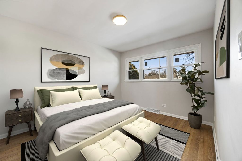 Beautifully remodeled and move-in ready home featuring modern updates throughout. This inviting residence offers a bright, open layout with refinished hardwood floors, recessed lighting, and neutral finishes that complement any style. The updated kitchen boasts white cabinetry, sleek countertops, stainless steel appliances, and ample storage, flowing seamlessly into the main living and dining areas-perfect for everyday living and entertaining. Bright remodeled bathroom and 3 very spacious bedrooms really seal this deal! The home includes spacious bedrooms with great natural light and an updated bathroom featuring contemporary fixtures and finishes. The full basement provides additional living space ideal for a family room, recreation area, home office, or gym. Exterior highlights include a well-maintained yard and ample outdoor space to enjoy. Prime location - convenient and highly desirable neighborhood.