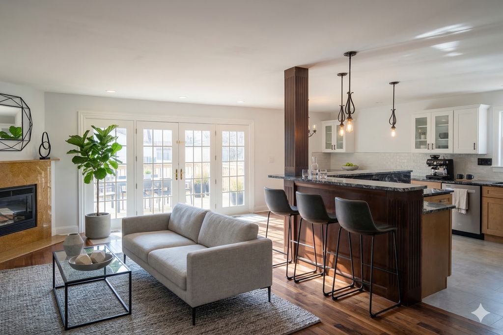 Freshly renovated and move-in ready, this stunning home offers modern luxury and thoughtful design throughout. Featuring 3 spacious bedrooms and 2.5 bathrooms, this home showcases brand-new upgrades and high-quality finishes from top to bottom. Upon entering, you'll immediately notice the beautiful dark walnut hardwood flooring throughout, abundant natural light, and a welcoming atmosphere enhanced by a skylight above the staircase. The main living area is bright and inviting, highlighted by an electric fireplace in the family room, perfect for cozy evenings. The heart of the home is the brand-new designer kitchen, featuring modern two-tone cabinetry, abundant cabinet space, and luxurious black granite countertops. Enjoy added convenience with a dedicated coffee bar and morning bar, creating the perfect space for starting your day or entertaining guests. All three bedrooms are generously sized and feature cathedral ceilings and recessed lighting, creating an open and airy feel. The primary suite is truly exceptional, offering French doors leading to a private balcony, perfect for enjoying your morning coffee. The suite also includes his-and-hers closets and a luxurious en-suite bathroom featuring custom tile work, a walk-in double shower, skylight, and a relaxing jacuzzi bathtub. For everyday convenience, the laundry is located on the second floor, making daily living easier and more efficient. Additional highlights include custom French doors leading to a brand-new spacious deck, ideal for outdoor entertaining and weekend gatherings. The partially finished basement provides flexible space that can easily be converted into a home office, gym, or additional living area. Major updates include two brand-new dual central air systems, ensuring comfort and efficiency year-round. Completing the property is a brand-new oversized 25-foot-deep carport/garage, providing generous space for parking, storage, or a workshop area. Bright, modern, and thoughtfully upgraded-this home is ready for its next owner to enjoy. Schedule your private showing today.