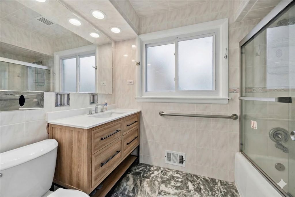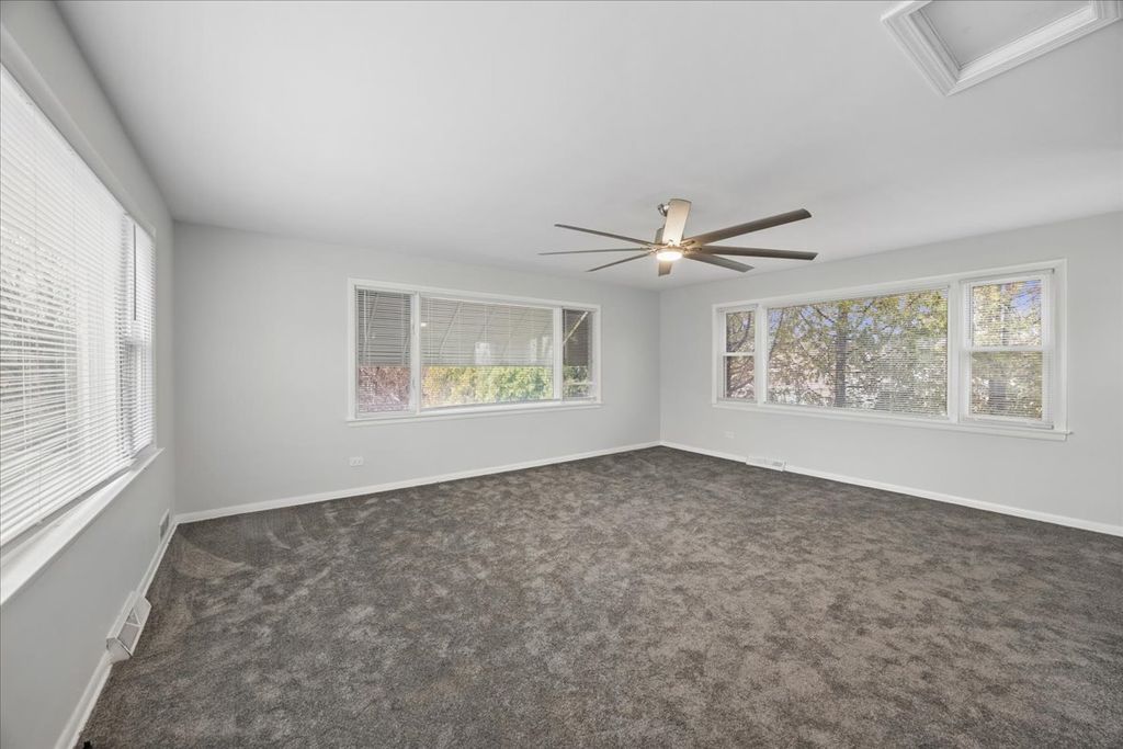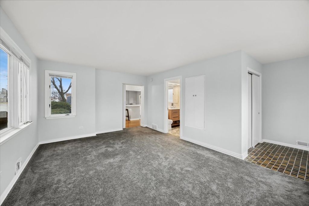 Welcome to this expansive and uniquely oversized Georgian situated on a rare double lot in the heart of Stickney. This impressive home offers a perfect blend of classic architecture and modern upgrades, providing a rare footprint for the area. The interior begins with a bright and airy first floor featuring gleaming hardwood floors and an open-concept living and dining area designed for seamless entertaining. The heart of the home is the updated chef's kitchen, which boasts sleek quartz countertops, a suite of stainless steel appliances, and durable ceramic flooring. The oversized island is designed with a breakfast bar, offering the perfect spot for casual meals or morning coffee. A unique highlight of the main level is the substantial fourth bedroom which features its own full bathroom, offering the versatility to serve as a primary suite, an in-law arrangement, or an impressive secondary family room. Additionally, the first floor is already plumbed for a half-bath, requiring only your choice of fixtures to complete the space. The second level is thoughtfully designed with a tremendous primary bedroom that includes a tandem room, ideal for a nursery, home office, or a dream walk-in closet. Two additional generously sized bedrooms and a second full bathroom complete the upstairs, with both bathrooms in the home featuring stylish new vanities and modern finishes. For even more living space, the basement provides a vast family room perfect for movie nights or a home gym. The outdoor space is truly the crown jewel of this property, featuring a massive backyard that is perfectly suited for large parties and summer gatherings. This home offers exceptional convenience with two separate driveways, including a brand-new cement side drive. Between the two driveways, there is ample space to park up to five vehicles off-street, making this a dream setup for multi-car households. Providing ultimate peace of mind, the property has been extensively updated with a newer roof, a newer HVAC system, and new electrical, ensuring this home is as reliable as it is beautiful.