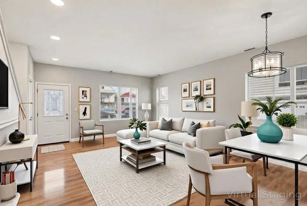 Welcome to this charming Cicero townhouse that perfectly blends comfort with modern updates. As you approach, a lovely covered front porch invites you into an expansive main level featuring durable wood laminate flooring and a large living and dining area ideal for entertaining. The heart of the home is the functional kitchen equipped with sleek stainless steel appliances, conveniently located next to a dedicated laundry room and a main floor powder room for guests. The upper level offers a private retreat with a generously sized primary bedroom boasting its own ensuite bath. Two additional nicely sized bedrooms and a second full bathroom provide plenty of space for family, guests, or a home office. Outside, you will find a fully fenced backyard with a patio perfect for summer grilling, leading to a convenient detached two-car garage. Enjoy peace of mind with recent building improvements including a new washer installed in July 2024 and a brand-new water heater from April 2025.