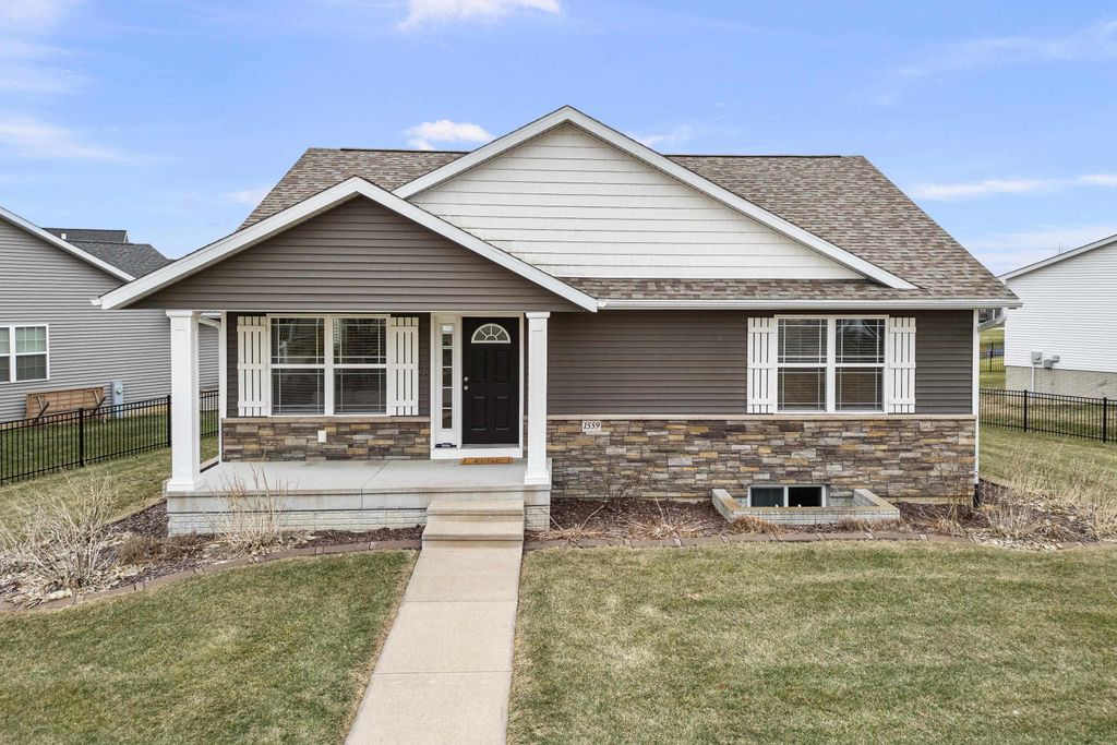 Discover this stunning 3-bedroom, 3-bath ranch home, built in 2016. A home designed for both style and comfort in Davenport's sought-after Prairie Heights neighborhood. Step inside to an open-concept main floor featuring vaulted ceilings that create a bright atmosphere, seamlessly connecting the living, dining, and kitchen areas. The chef-friendly kitchen boasts stainless steel appliances, a central island with breakfast bar seating, and ample storage, perfect for entertaining. Enjoy main-floor convenience boasting laundry facilities and a private primary suite with its own full bath. The finished basement expands your living space with a third bedroom, another full bathroom, a spacious rec room, and a dedicated storage area, all illuminated by daylight windows. Outside, you'll find a welcoming front porch, a private back deck, and low-maintenance landscaping. Located near playgrounds, shopping, dining, and the library, this home offers the perfect blend of modern amenities and convenience. Schedule your own private tour today! {Buyer/Buyers Agent to confirm all.)