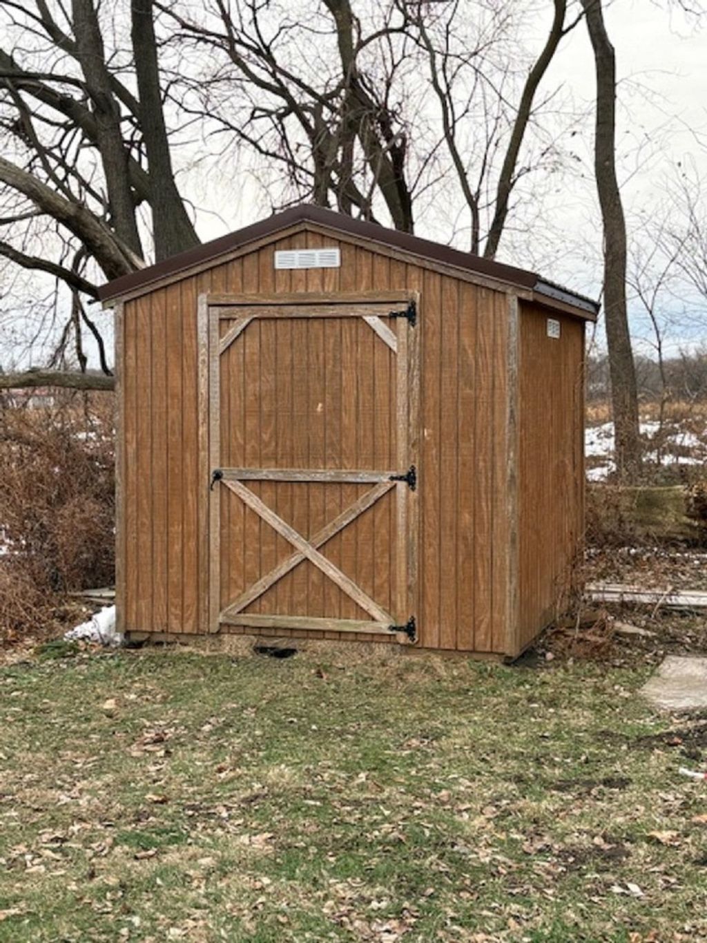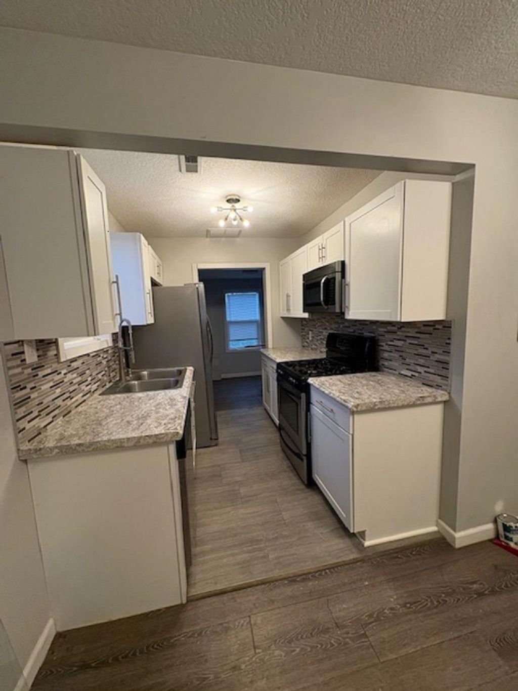 This 2 bedroom,1 bath home has been a rental unit. As you walk in the side entrance on the east of the home, you step up onto a 11' x 15' wooden deck with lighted pergola and then you enter into a mud room with a white Roper washer & dryer. Home was previously updated (estimate 10 years) to include modern LVT and ceramic flooring, newer drywall and paint, vinyl clad windows, Wilsonart Typhoon laminate countertops and "sharp" gray and black back tile splash in the kitchen. There are SS appliances in the galley kitchen incl./dishwasher, refrigerator/freezer, gas stove w/exhaust microwave., (All Frigidaire). The enclosed porch could be a bedroom, with an exit, but that takes out the front door. Rental, or your home this is a great opportunity.