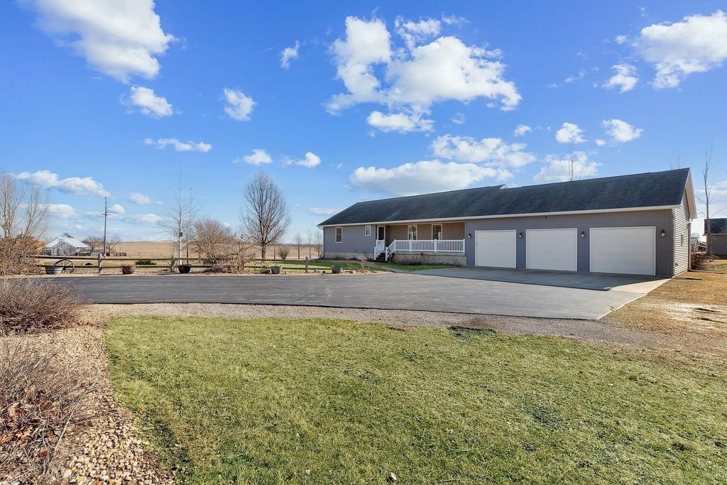 Welcome to 2849 262nd Street in the desirable Cardinal Valley Estates just outside DeWitt! Built in 2012, this stunning walk-out ranch sits on 2.54 acres and offers approximately 1,950 sq ft of main floor living with an additional 1,650 sq ft finished lower level. The open-concept layout includes 3 bedrooms (2 up, 1 down), multiple baths, and bright, modern finishes throughout. Enjoy the spacious kitchen with quality appliances and a cozy living area perfect for gatherings. The finished walk-out basement provides a large family room, guest bedroom, and additional living space. Geothermal ensured year-round efficiency and comfort. Outdoor living is a dream with multiple decks, a patio, and peaceful country views. Property also includes an attached 928 sq ft garage plus a detached 1,194 sq ft garage/workshop built in 2015?ideal for hobbies, vehicles, or extra storage. Located in the Central Community School District and just minutes from DeWitt amenities.