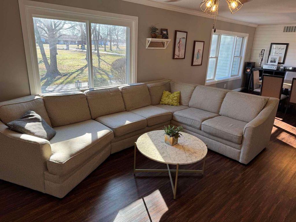 Welcome to this beautiful one-story home offering 2,904 square feet of comfortable living space with 4 spacious bedrooms, each featuring large closets, and 3 full bathrooms. The spacious eat-in kitchen is perfect for gatherings and everyday living, showcasing quartz countertops, abundant cabinetry, and generous counter space. Enjoy cozy evening with two fireplaces - an electric fireplace in the living room and a gas fireplace in the family room - along with the added efficiency of a wood burning furnace. This house ample storage both in house and attached garage including a storage room and space above the garage. If you enjoy outdoor living, you will love the gazebo with a swing, a firepit and lots of wildlife to enjoy while you relax. Did I mention the pole barn with a fabulous mancave with a bar and plenty of room for a hobbies plus additional parking. The attic room is waiting to be developed. Situated in a quiet rural suburb on a dead-end road, this home offers privacy and tranquility, with the back of the lot bordered by open agricultural land, proving peaceful views and true country feel. The following improvements have been made: roof (2025), windows throughout (2017-2026), HAVC (2020), Range (2024), dishwasher (2020), attached garage door (2019). paint throughout (2025), flooring (2019) patio and gazebo (2021).