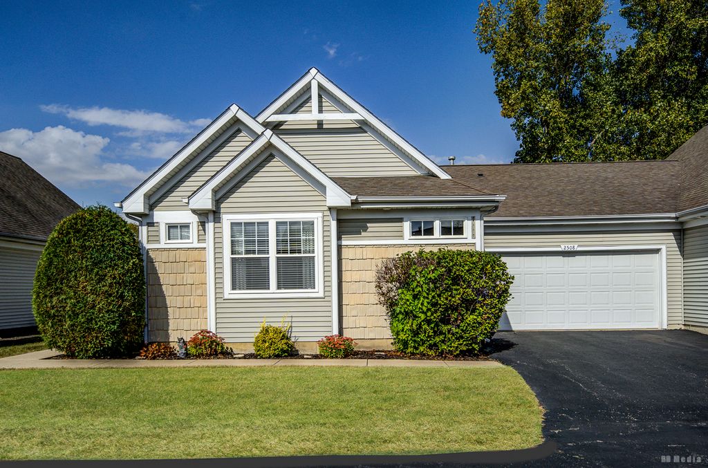 Welcome to this beautiful end-unit ranch townhome nestled in a highly sought-after gated 55+ community. Designed for comfort and convenience, this home boasts a well-appointed kitchen with 42-inch oak cabinets, a planning desk, pantry closet, and a spacious breakfast area with direct access to the concrete patio and the beautifully landscaped yard. A formal dining room with gleaming wood laminate floors opens to the sun-filled living room, complete with an electric fireplace for cozy evenings. The spacious master suite features a walk-in closet and a private bath with a large walk-in shower with built-in bench and a linen closet for added storage. A convenient laundry room with cabinetry, plus a two-car attached garage, make everyday living easy. Offering style, comfort, and a maintenance-free lifestyle, this move-in-ready home is the perfect choice for relaxed living in a vibrant 55+ community.