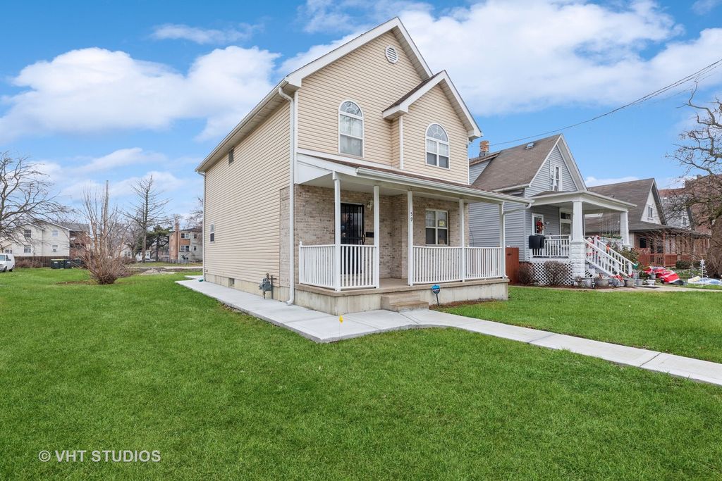 Rarely Available Newer Construction Three Bedroom, Two Bath Two-Story Riverdale Rehab with Full Unfinished Basement Now Available for Sale! Built Just in 2001! Open Floorplan! Upgrades Include Kitchen White Cabinets, Quartz Countertops, Stone Backsplash, Undermount Sink, SS Appliances! Kitchen Centered by a Huge Island - Great for Entertaining and Storage! The Comfortable Main Level Includes a Full Bathroom, Recessed Lighting, Ceiling Fan & Wide Plank Wood Grain Laminate Floors! Beautiful Wide Staircase with White Railings & Spindles. White Six-Panel Doors, Chair Rail, Base & Trim! Freshly Painted. Three Bedrooms on the 2nd Level with New Carpet and Large Full Bathroom. Two Fully Upgraded Baths with New Vanities, Faucets, Mirrors, Lighting, Toilets. Ceramic Bath Surrounds! Large Full 32'x20' Unfinished Basement for Finishing Ideas and/or Storage. New Furnace, AC, Water Heater! Vinyl Windows. Brick & Vinyl Siding Face with Charming 21'x6' Front Porch. New Concrete Walkways, 22'x'20 Back Yard Patio & Wood Deck for Entertaining! Huge Lot/Back Yard! Parking Pad in Rear of Lot but Street Parking Available in Front of Home. Seller Offering a $6,000 Closing Costs Credit. This Home Has It All - See it Now!