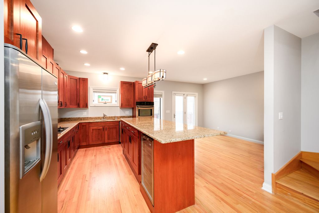 Extra wide corner lot home with 4 beds up and plenty of room for 5th bed in finished basement! Large Bridgeport home in quiet setting off the river. First floor features open plan with hardwood floors and tons of windows. Kitchen features large island, tons of cabinet space, 2x oven, and vented hood. Open to dining area and rear deck. Second floor has 4 beds, laundry, and hall bath. Primary suite has large walk in closet, sep soaking tub & shower with rain head and body sprays, 2x vanity. Lower level has huge rec room, full bath, & large storage room. Dual zone HVAC with gas forced heat and central air. Ideal Bridgeport location close to I90/94, I-55, and CTA Orange line.