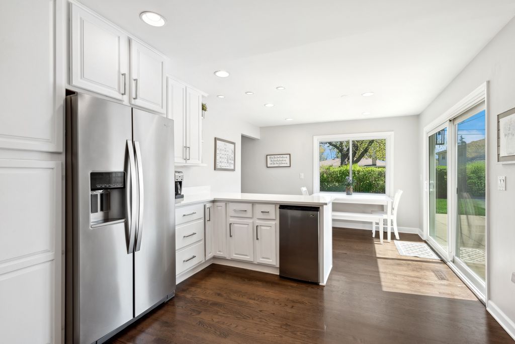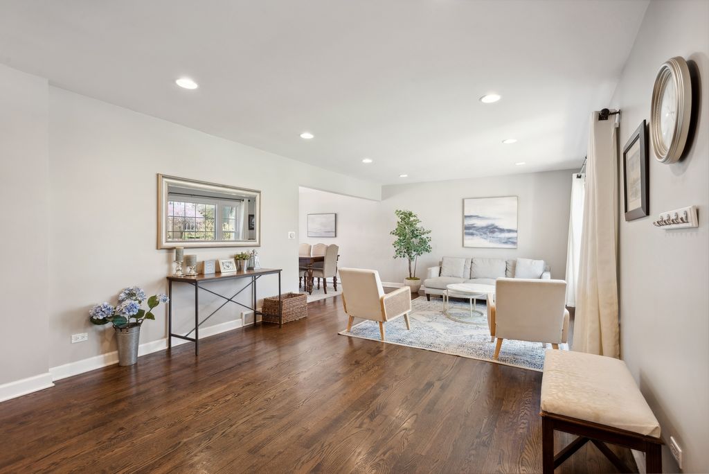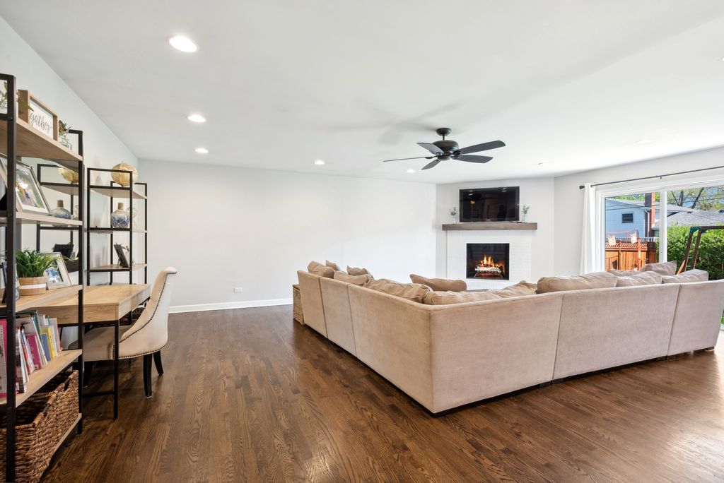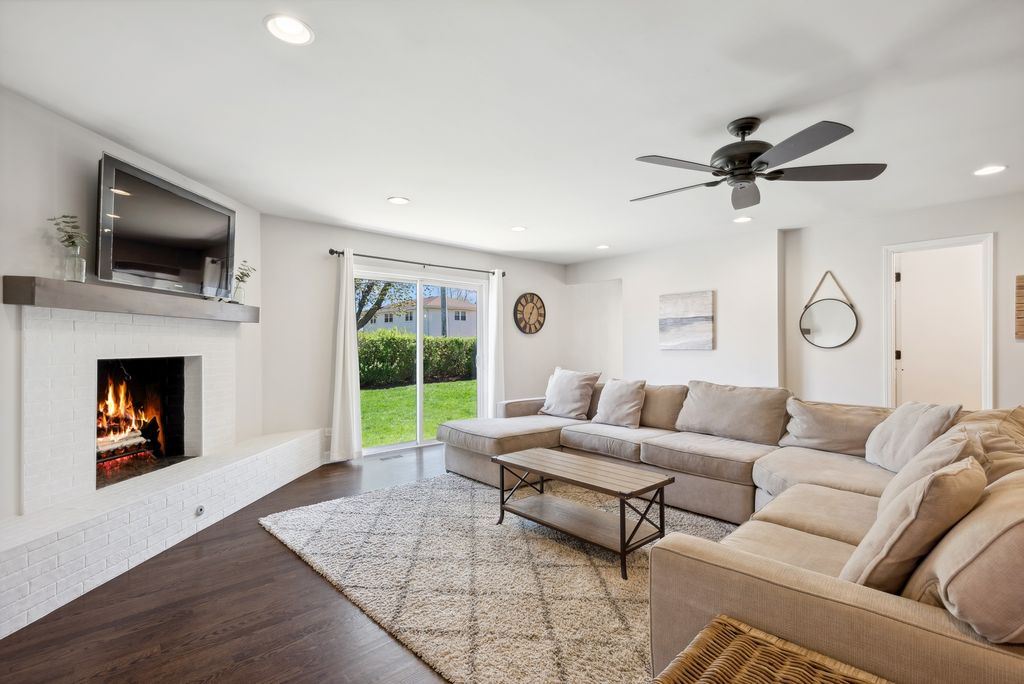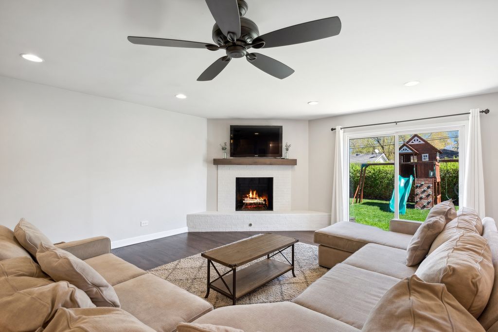 Nestled in the highly desirable Blue Ribbon Jefferson school neighborhood of southeast Elmhurst, this meticulously renovated 3-bedroom, 2.5-bathroom home offers modern comfort and thoughtful updates throughout. Upon entering the new front door, you'll be greeted by a spacious living room showcasing beautiful hardwood floors and new windows that flood the space with natural light. The home features a separate dining room perfect for entertaining, while the well-appointed kitchen boasts stainless steel appliances, a convenient breakfast bar, and an eating area. A sliding glass door from the kitchen opens to a patio, ideal for outdoor grilling and dining. The generous family room centers around a cozy fireplace and provides access through sliding glass doors to the fully fenced and professionally landscaped large backyard-perfect for relaxation and recreation. The primary bedroom features an updated en-suite master bathroom. Two additional well-sized bedrooms share a beautifully renovated full bathroom. Finished lower level with new carpeting. Convenient first-floor laundry room. Attached two-car garage for secure parking and storage. This exceptional home is walking distance to Butterfield Park with quick access to Jefferson (K-5),Visitation (PreK-8),Smalley Pool/Park,The IL Prairie Path, the York/Vallette Business District, to all Chicagoland highways (88/290/294) and Oak Brook Mall.