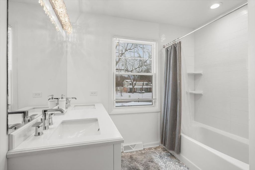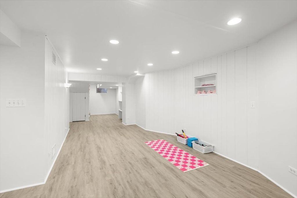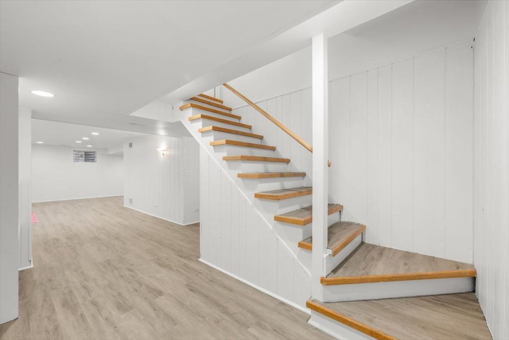 This beautiful spacious home has a great open floorplan and wonderful natural light in every room. As you enter there is a big foyer that leads to the huge LIVING ROOM which has wide crown molding and bay windows. The updated KITCHEN has new quartz counters, all stainless appliances, tile backsplash, deep stainless sink, new flooring & light fixtures, and has a bright eating area overlooking the huge backyard. The adjacent, south facing FAMILY ROOM has floor to ceiling windows and a sliding glass door to the patio. This home features a very large PRIMARY BEDROOM that has 3 closets, sitting or office area, ceiling fan, and a beautifully renovated bath with a double bowl quartz topped vanity and gorgeous floor and wall tiles. The 3 family BEDROOMS all have nicely organized closets and ceiling fans. The 2nd floor hall bath is also renovated with a new quartz topped vanity and subway wall tiles. The basement has a large freshly painted REC ROOM with new flooring. There is a big LAUNDRY/MUDROOM right when you enter the home from the attached 2 car garage. There are hardwood floors and newer windows & fixtures throughout the home. Updated mechanical systems. The Huge backyard is great for sports and entertaining and has a nice patio, fence, and attractive mature trees! Great location near Chicago Botanic Garden; and Briarwood, Trail Tree, Magnolia, and Woodridge Parks.