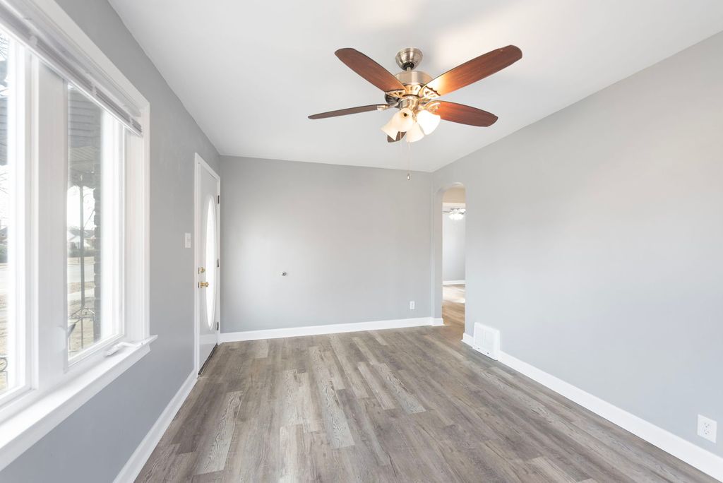 Charming Cape Cod is awaiting its new owner! This cosy brick home is freshly painted inside and has new flooring. Kitchen features freshly painted cabinets, new sink, faucets and counter-tops. Seller is offering an $800 credit towards a new refrigerator with an accepted offer. Huge rec room in the basement perfect for gatherings or future expansion. Ceiling fans in rooms on the main and second levels. Roof is approximately 8 year old. Hook-up for washer and dryer in the utility room. Property includes a detached one-car garage. NOTE: No exemptions on taxes. Conveniently located near schools, shopping, public transportation and major highways, Don't miss ouit, call for your appointment today!