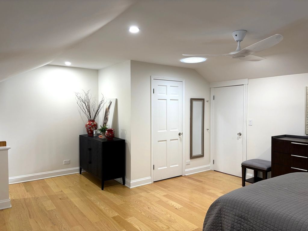 This rarely available, one-of-a-kind end unit English Row Home is located in Hinsdale's sought-after Sutton Place. This unique first floor primary bedroom unit faces east and is flooded with natural light with new windows and custom blinds (2025). Upon entering you'll fall in love with the vaulted ceiling in the entry and living area, vast bay window and 5" Brazilian cherrywood flooring. There are over 20 new LED low profile bright white can lights throughout the home. The dining room gives you that formal feel with a wainscot feature wall and crown molding. Cooking in the kitchen will be a joy with bright white 42" cabinets, quartz countertop and backsplash, pull out drawers, under cabinet lighting, water filtration system and newer stainless steel appliances. A first floor laundry room is located off the kitchen and includes full size side-by-side washer/dryer and cabinetry. The first floor features an amazing cedar lined walk-in closet with custom Elfa shelves and storage. Your first floor bedroom includes his and hers cedar lined closets, a large ensuite bath with white cabinets/linen, porcelain countertop and a new deep depth Kohler tub/shower (2025). Venture outside to a private brick patio with full landscaping. This charming space is perfect for beautiful days and evenings entertaining at home. The enclosed storage shed is ideal for your gardening tools and outdoor supplies. Back inside the open oak staircase takes you to the second floor with 5" white oak flooring. The space is currently used as a primary bedroom with custom lighting, Haiku ceiling fan, a full bath with a Kohler base stand up shower and custom glass surround (2025), white cabinets and quartz countertop. The second floor also contains a huge full length room walk-in closet complete with Elfa shelving and plenty of hanging space. Additional finishes include solid-core six paneled doors, glass knob door hardware and 5.5" molding. Freshly painted Benjamin Moore 2024 color of the year, White Dove throughout. There is extensive new landscaping in the front and side yards and rear patio. It has a detached single car garage with storage and a new MyQ garage opener. There is convenient parking in front of the home. It has a newer roof, skylight, venting, attic fan, electrical panel, Trane furnace and 17 Seer AC unit. The Sutton Place community property boasts a large common recreation area behind the property along with a separate fabulous pool! All Hinsdale schools and close proximity to town. You do not want to miss this opportunity to be a part of the Sutton Place community. This cherished home is turn-key and ready to move-in! Agent-owned. Owner occupied or immediate family, no rentals.