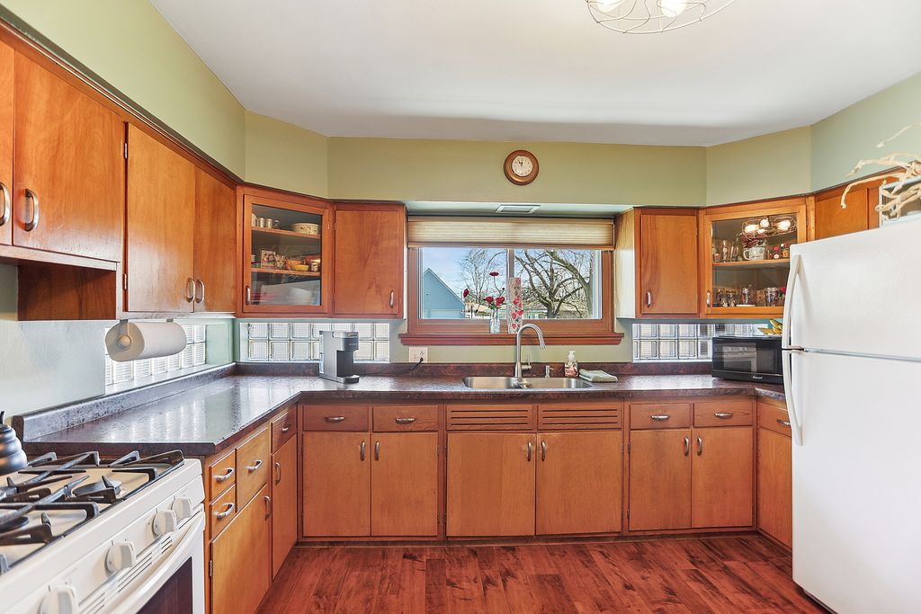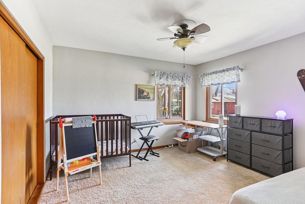 Beautiful blend of mid century and Craftsman style is pervasive throughout this 1950's Ranch home. Built on a rare double lot, fully fenced with alley access in the back. A 14'x14' shed (converted original garage) will handle any storage you need for keeping your expansive 110'x131' yard neat and tidy... Plenty of room for planting or playing! Since 2023, all new windows (except master bedroom) and a double sliding patio door have been installed. Other updates include new carpet in the huge, 25'x19' family room and a fully water-proofed basement with a warranty that passes to the buyer. New carpet and baseboards were also installed in the basement in 2025. A 25'x7' covered back patio is perfect for enjoying the sunset. All appliances stay, including a battery back-up for the new Sump pump and the electrical upgrade that came with it's installation!