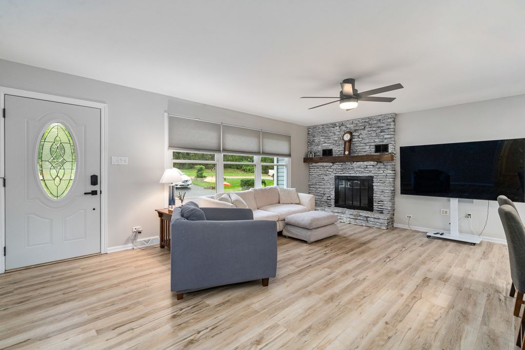 Check out this hard-to-find 4 bedroom, 2 bath ranch that's nestled on a large lot on Batavia's delightful east side. This nicely updated ranch boasts an open floor plan that features: A stunning kitchen with white 42" cabinets, designer subway tile backsplash, granite counters, huge island, large, walk-in pantry & stainless steel appliances; Breakfast area with door to the large deck overlooking the .39 acre yard with shed & adorable scenic views of the nearby horse farm & creek; Sun-filled living room that's adorned by a cozy tone fireplace; Formal dining room with bow window that's perfect for family dinners; Spacious master suite that offers a walk-in closet with custom organizers & private, updated bath that boasts a double gray vanity, oversized shower with bench, wood-look ceramic tile flooring & detailed tile accents; 3 additional main level bedrooms; Bath #2 has been remodeled with a nice soaking tub & white quartz vanity; Hardwood flooring throughout main level; The basement is perfect for storage; Plenty of parking available in the 2 car garage or large side drive. New: Windows (6 years), Trane AC (9 years), Trane Furnace (10 years). Public water & sewer available.