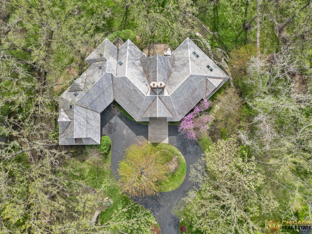 Designed by the talented and highly acclaimed architect, Ron McCormick. Iconic home situated on approximately 1.3 acres and overlooking the sweeping views of 16th fairway of Wynstone Golf Course. For those discriminating buyers desiring the finest of a unique custom built home with features including stone and woods incorporating the gorgeous oaks of outside and the contemporary oasis of the inside. One is welcomed by a dramatic entrance to almost 4000 square feet on the first floor! The layout and style of the home captures every aspect of the property.Ideal home for those seeking multi generational situation or more elegant and private guest space. Expansive primary suite on main level, blend of mid century and Frank Lloyd Wright tones in the kitchen, dining area, and great room with expensive flooring and wood touches. Upstairs provides the perfect guest quarters with living space, bedroom, and separate kitchenette area. The finished walkout emphasizes the openness of the home and highlights the floating staircase. Incredible spaciousness to entertain, enjoy the fine elements of the home, and the impressive property with towering trees. Recent HVAC replaced and one year new roof.