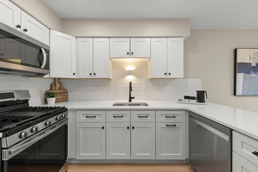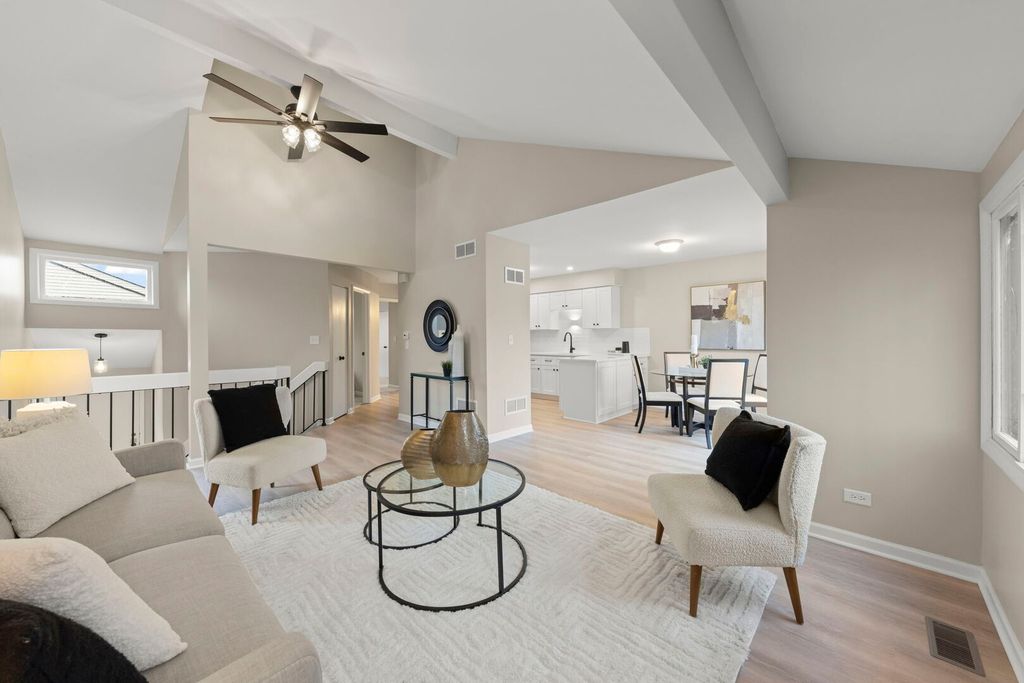Beautifully renovated in 2025, this two story end unit townhome offers serene pond views and modern updates throughout. A truly move in ready home that features 3 bedrooms and 1.5 updated baths with a bright, modern aesthetic. New LVP flooring, fresh neutral paint, and updated lighting create a clean and cohesive feel throughout the main living spaces. The renovated kitchen showcases quartz countertops, new cabinetry, and all new appliances, while plush new carpet upstairs adds warmth and comfort to the bedrooms. As an end unit, the home enjoys added privacy and abundant natural light. Rarely found in townhome living, two outdoor living spaces overlook a tranquil pond, creating a peaceful setting to start the day or unwind in the evening. Additional highlights include in unit laundry with a new washer and dryer (2026), HVAC replaced in 2021, and an attached two car driveway. Residents enjoy access to community amenities including a pool and clubhouse, while the location offers exceptional convenience just minutes from Woodfield Mall, shopping, dining, parks, and major commuter routes including I-90 and I-290, all within the Conant High School boundaries. Fully renovated and move in ready, this home blends modern updates, outdoor living, and everyday convenience in an exceptional location.