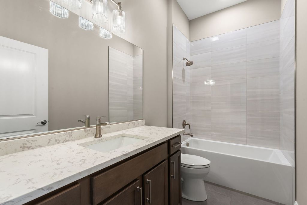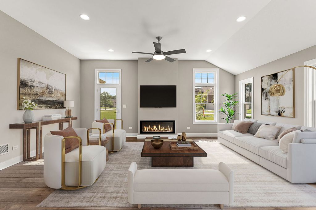 NEW CONSTRUCTION SPEC RANCH townhome - READY for IMMEDIATE OCCUPANCY - with FULL FINISHED BASEMENT in the desirable development of the Estates of Montefiori! At first glance, you will be impressed by the quality and design of the open floorplan that includes 10' semi-vaulted ceilings and tons of warm, natural light. The kitchen showcases 42" upper kitchen cabinets with a double trash bin pull-out, oversized island with built-in microwave, quartz countertops and Kohler plumbing fixtures. The open main level offers a dining / living room combo with upgraded hardwood flooring and a linear gas fireplace. The primary en suite located off the inviting great room features walk-in closets with wire shelving and a gorgeous stand-up shower with double vanity. A second bedroom privately located away from the master offers flexibility for overnight guests or home office needs. The finished basement includes a third bedroom, full bathroom with standup shower and a large den. Located in charming and historic Lemont, this development is only minutes to shopping, restaurants, The Forge outdoor adventure facility, expressways and Metra train station; less than an hour to O'Hare & Midway airports. (Some photos are staged - Shown by appointment only.) LOT 31