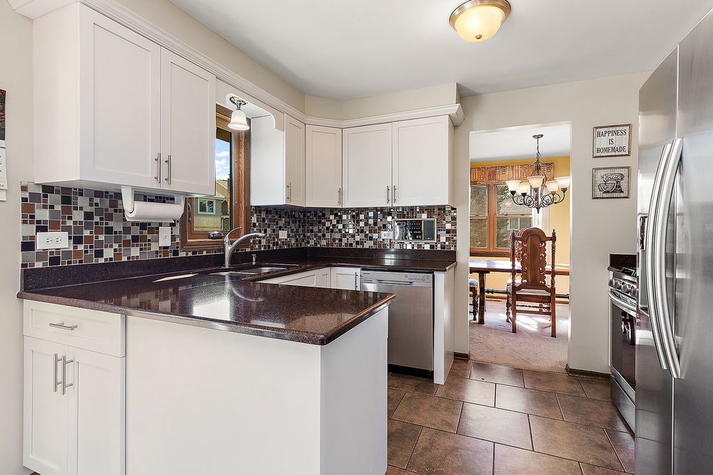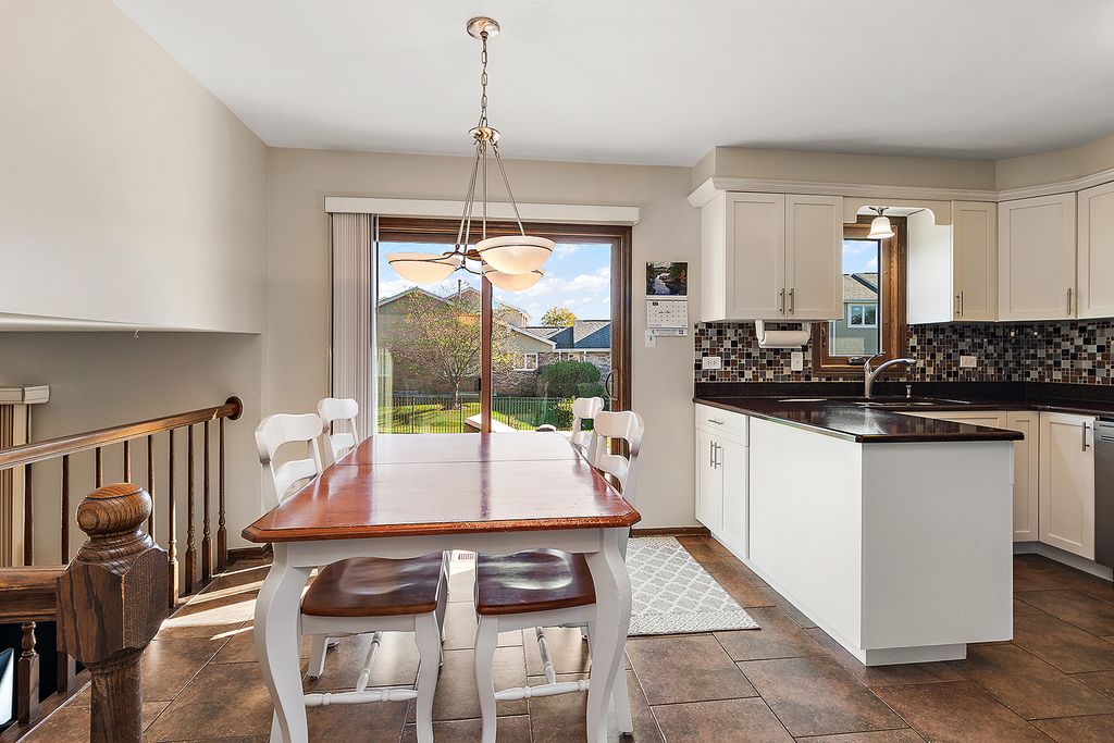 This meticulously maintained, tri-level home with sub basement has neutral decor and window coverings and is nestled in the desirable Brook Hills neighborhood, within the top-rated Orland Park school district. The updated kitchen features white cabinetry, granite countertops, complimenting backsplash, and stainless steel appliances. Full, unfinished basement for storage or expansion. Enjoy the large stamped concrete patio that opens to a beautifully landscaped, fenced backyard offering privacy and a serene escape. New roof, gutters, garage door opener, and storm doors in 2024 and new dishwasher and furnace in 2025. Walkable access to shopping, dining, and entertainment, including Starbucks, McDonald's, and Jewel. Direct path to METRA for an easy downtown commute, adding to the property's appeal for busy professionals. This property is your opportunity to enjoy a balanced lifestyle of comfort and convenience in a community brimming with amenities. Don't miss the chance to make this move-in-ready gem your own!