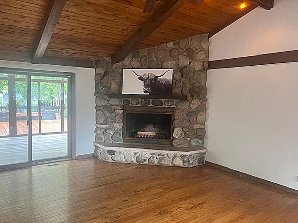 REDUCED $50,000!!! Renovated in 2020. 2 story foyer open to huge vaulted great room with wood ceiling and hardwood floor. This gorgeous space is ready for entertaining! Huge kitchen with generous cabinet space, center island, and beautiful granite countertops. The eating area has glass on 2 sides with door to the tiered sundeck. First floor master suite has doors leading right to the pool for your morning swim. The master bath has a whirlpool tub and separate shower. Vacation at home with your own swimming pool on this large lot. The large vaulted sunroom is walls of glass, skylights, ceiling fan and door to the tiered deck. The finished basement adds plenty of space for a den with fireplace, rec room with party-size bar, bathroom and a separate office. The pool, sunroom and decks are accessible by multiple rooms in the home., Cozy up to the stone fireplace in the vaulted family room with an evening around the fire. Remodeled bathrooms. Neutral throughout, Private property with open vistas. Home to be sold 'AS IS'.