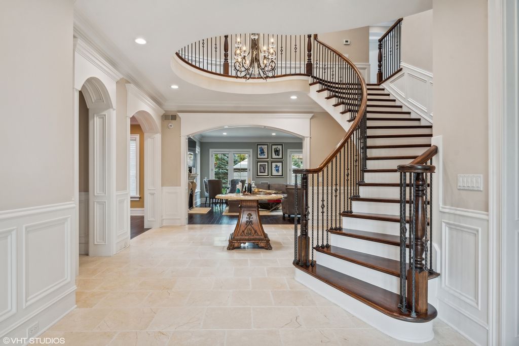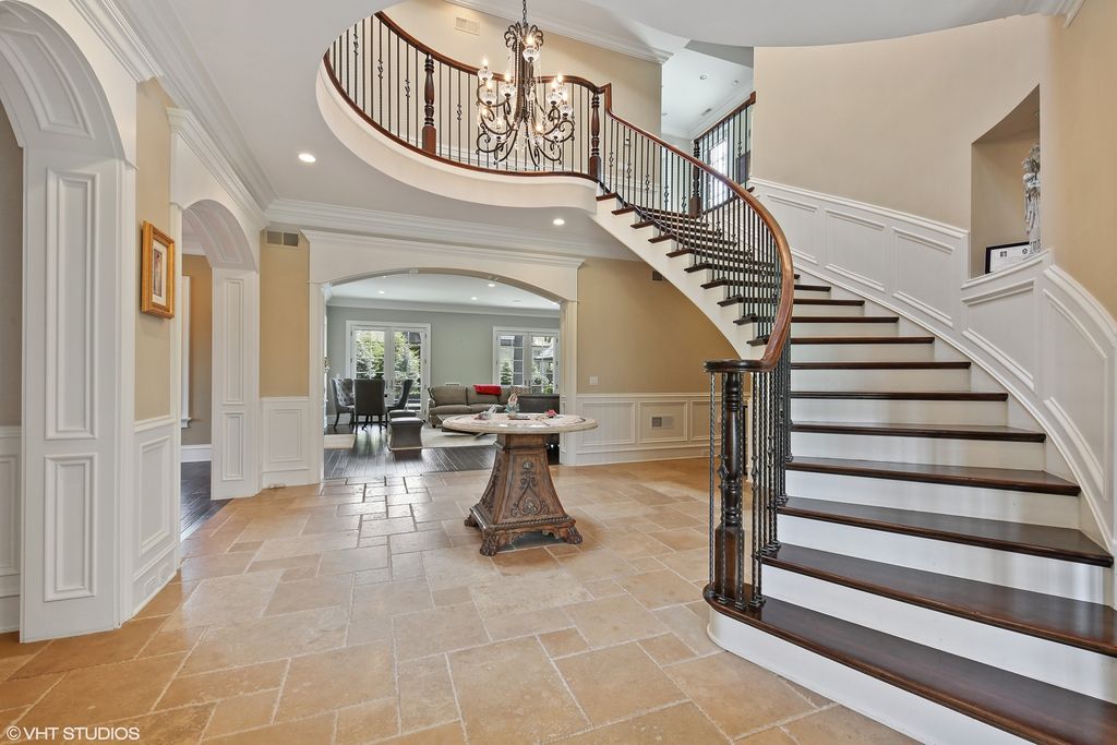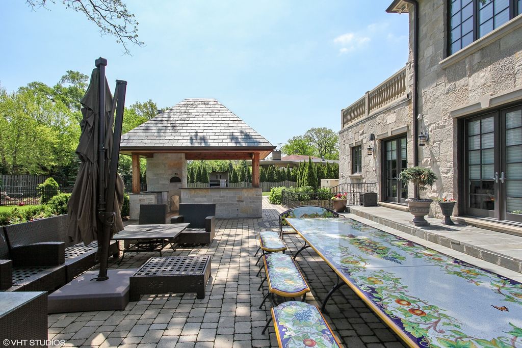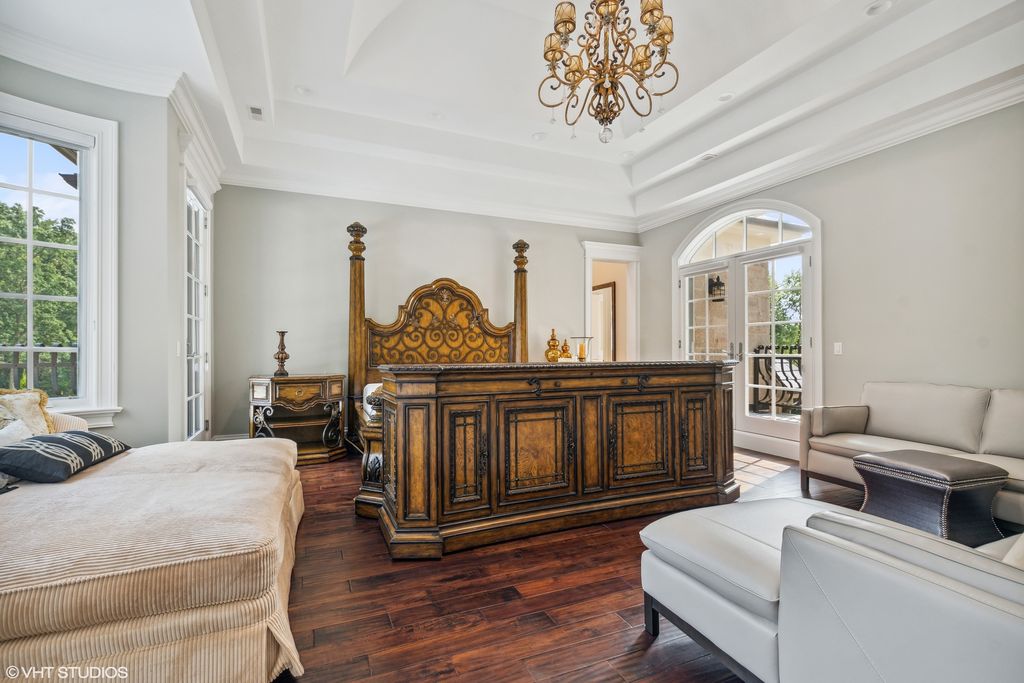 Extraordinary French style stone home on over half acre golf course setting. Elegant foyer with stone floor, and hand scraped wide plank walnut floors on main level. Generous dining room, billiard room, office, and family room with limestone fireplace and access to amazing yard. Remodeled kitchen with high end appliances, limestone floor and large eating space. First floor mudroom with laundry. Grand staircase to the 2nd floor with a spacious primary bedroom with two private balconies. Recently updated deluxe primary bath with double vanity, makeup area, separate shower and tub. Oversized completely outfitted closet. Four other en suite bedrooms and additional laundry room complete the 2nd floor. Bright, fully finished lower level with oversized window wells, wet bar, wine room, rec room, gym, and separate boxing room. Backyard boasts a commercial grade Stone outdoor kitchen with slate roof with a wood burning pizza oven, commercial burners, and fridge. Large heated brick paver eating area overlooking lushly landscaped yard and vegetable garden. Heated paver driveway and 3 car garage. Call Lanny for more details