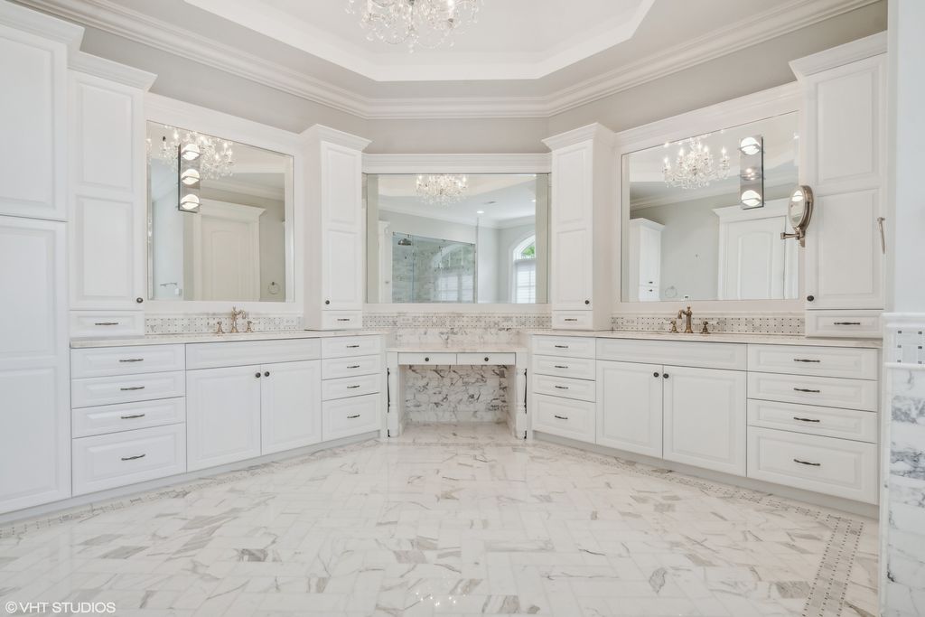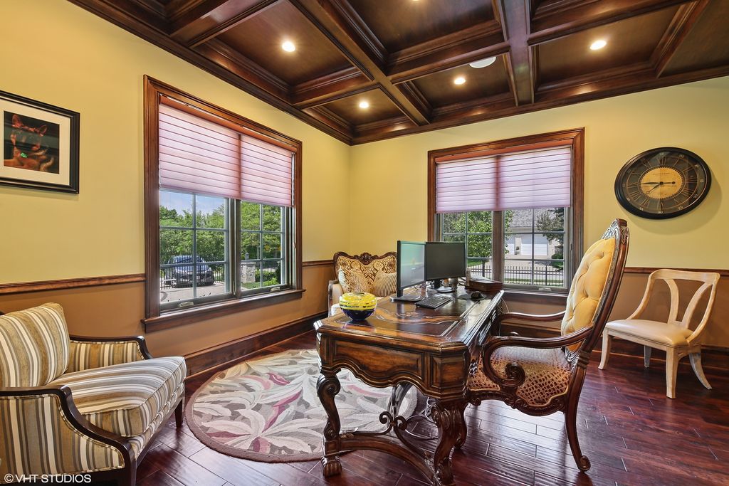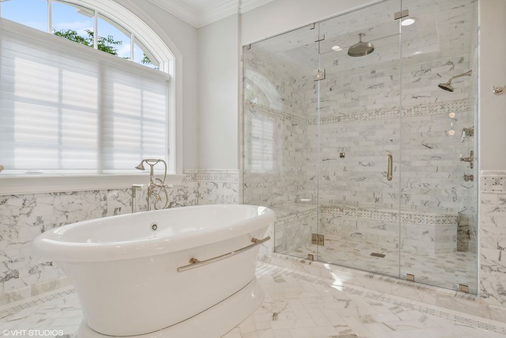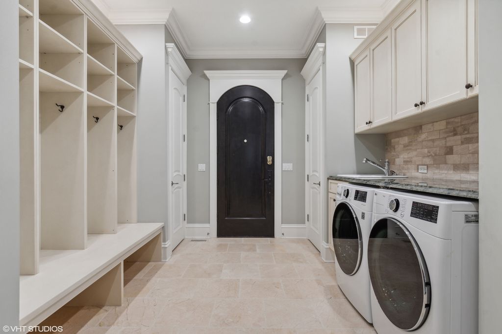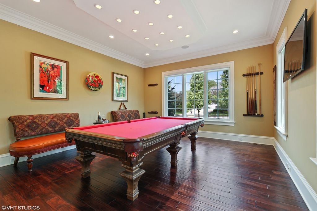 Extraordinary French style stone home on over half acre golf course setting. Elegant foyer with stone floor, and hand scraped wide plank walnut floors on main level. Generous dining room, billiard room, office, and family room with limestone fireplace and access to amazing yard. Remodeled kitchen with high end appliances, limestone floor and large eating space. First floor mudroom with laundry. Grand staircase to the 2nd floor with a spacious primary bedroom with two private balconies. Recently updated deluxe primary bath with double vanity, makeup area, separate shower and tub. Oversized completely outfitted closet. Four other en suite bedrooms and additional laundry room complete the 2nd floor. Bright, fully finished lower level with oversized window wells, wet bar, wine room, rec room, gym, and separate boxing room. Backyard boasts a commercial grade Stone outdoor kitchen with slate roof with a wood burning pizza oven, commercial burners, and fridge. Large heated brick paver eating area overlooking lushly landscaped yard and vegetable garden. Heated paver driveway and 3 car garage. Call Lanny for more details