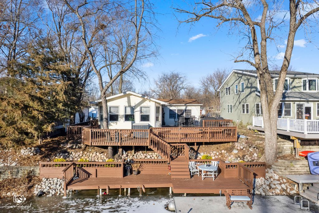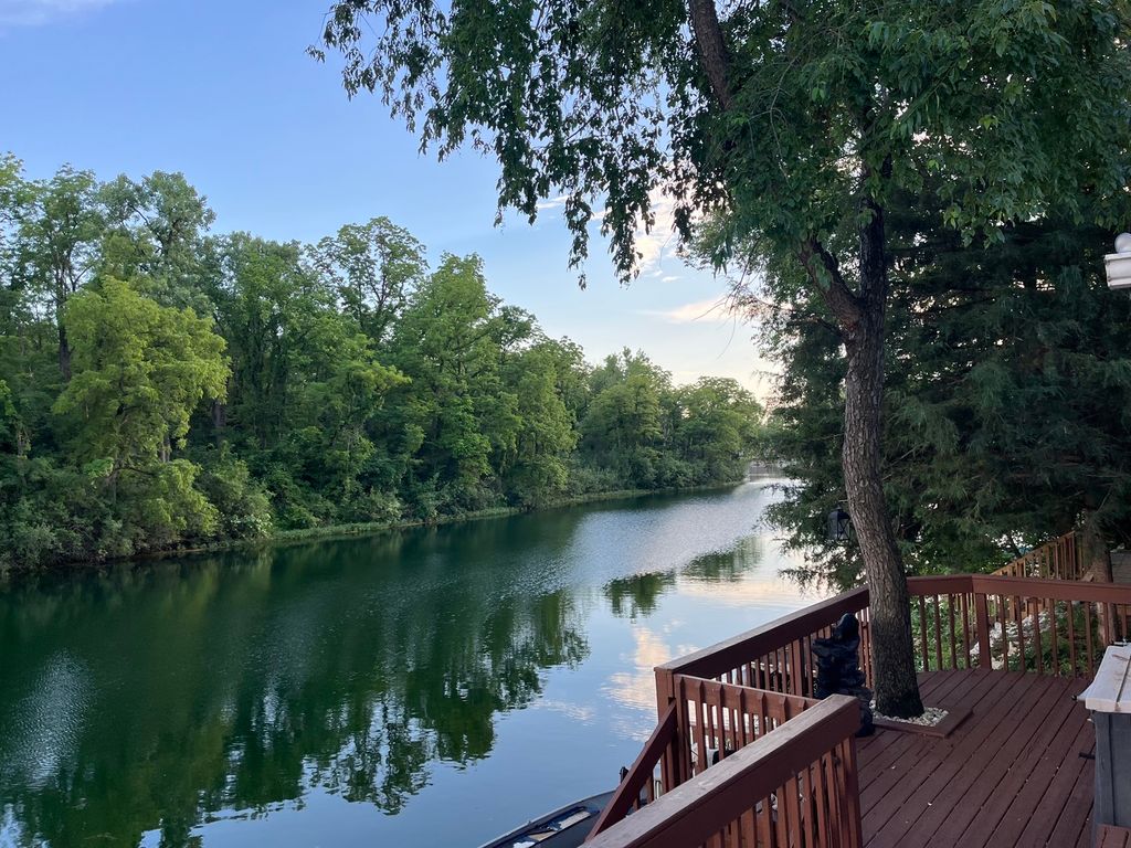 Welcome to your new waterfront retreat! Enjoy beautiful lake views on Little Shadow Lake, overlooking a protected nature preserve that provides exceptional privacy and serene surroundings. The waterfront directly in front of the property is approximately 30 feet deep, offering excellent deep-water access and making this a truly special lakefront setting. Boat, trailer, and golf cart are included at the full asking price: a 2004 Crestliner pontoon boat with new interior flooring, seats, and console, plus a 2010 Yamaha golf cart. This highly sought-after location includes an additional lot across the street (5 Largemouth Ln) featuring a 2.5-car garage and shed, both with electric, plus extra storage-perfect for all your water toys and outdoor gear. This two-bedroom, one-bath home offers both a living room and a family room, giving you plenty of space to relax and entertain. Step outside onto the large deck, ideal for hosting gatherings and enjoying warm-weather lake living. All appliances were updated in 2024, including the washer, dryer, and water heater. The roof was replaced in 2017, and the home features natural gas, eliminating the need for propane. Shadow Lakes is known for its fishing, boating, swimming, and kayaking. The community clubhouse offers a pool, beach, volleyball, basketball, and scenic nature trails, making this property perfect as a weekend getaway or a year-round residence.