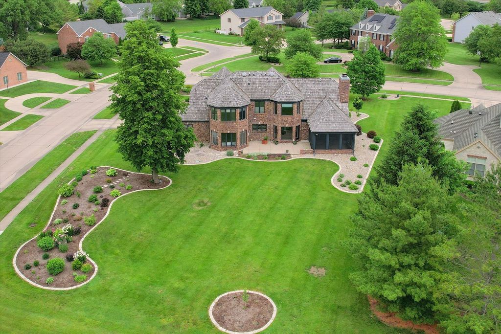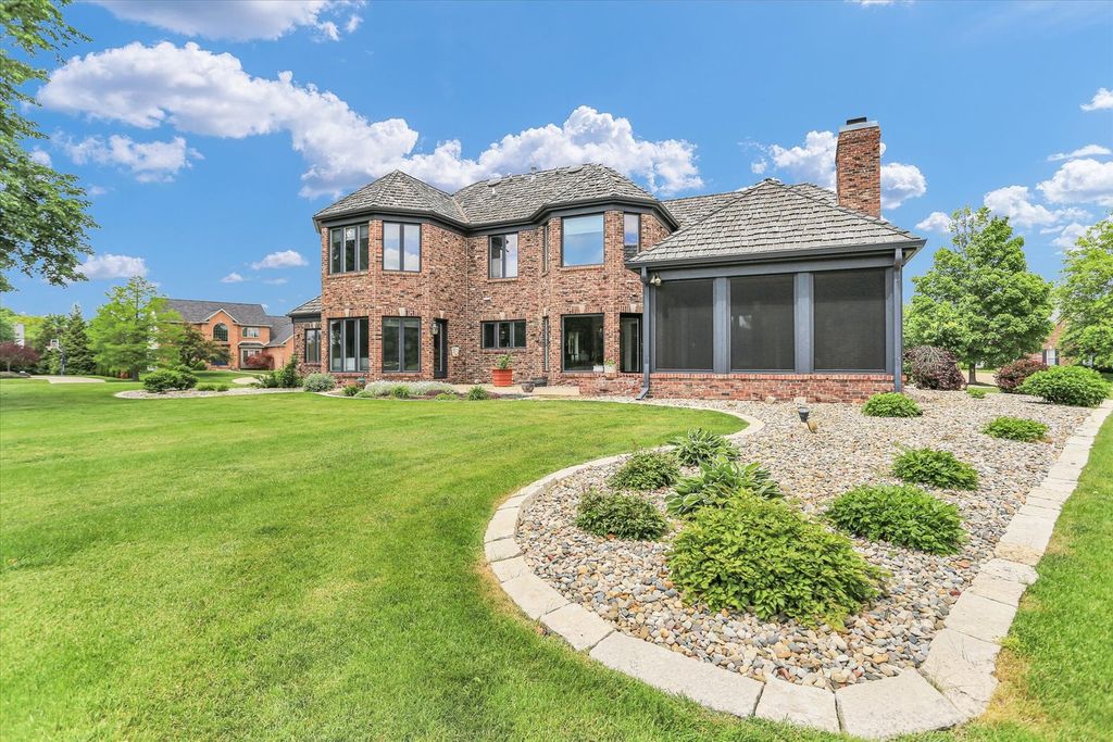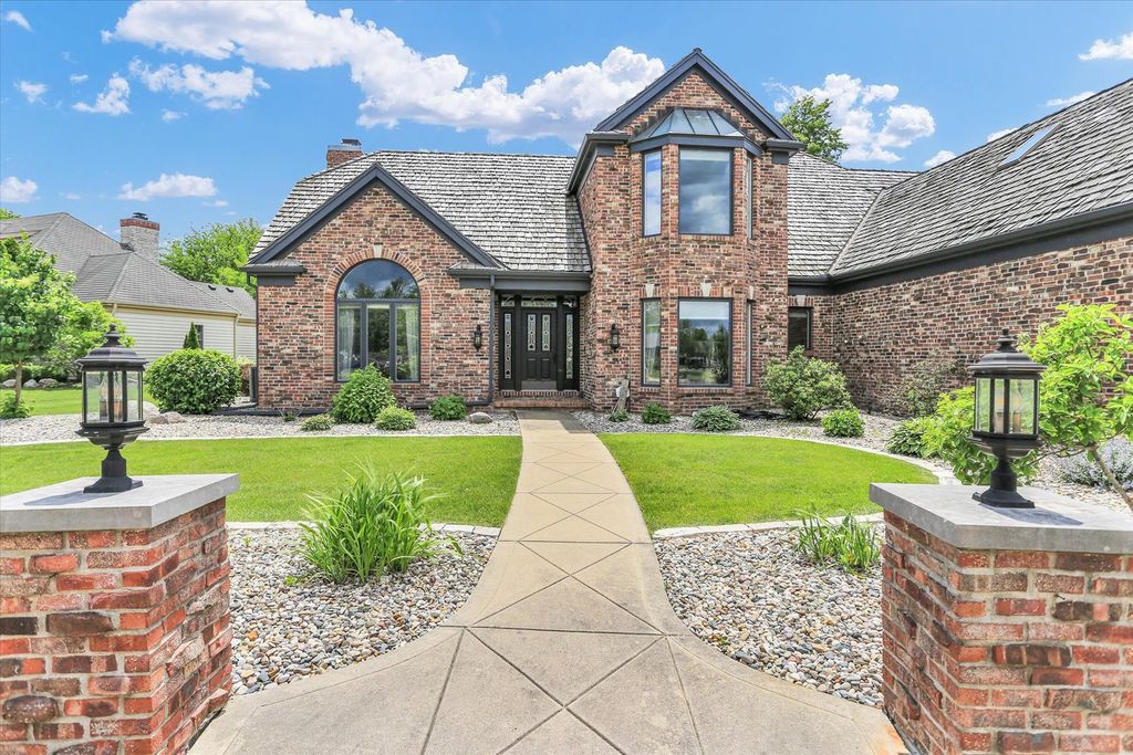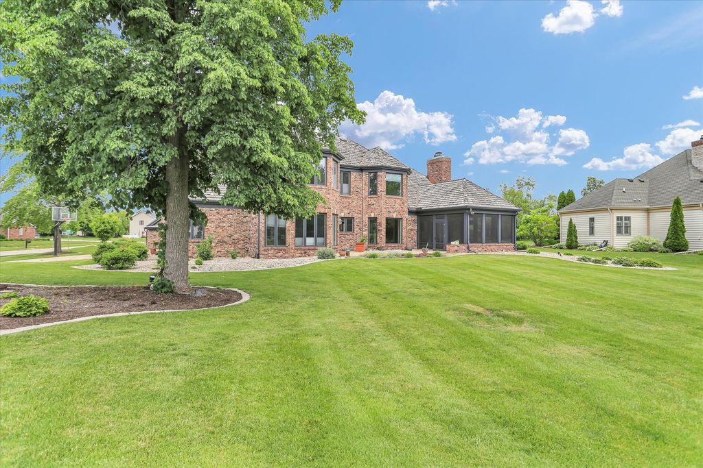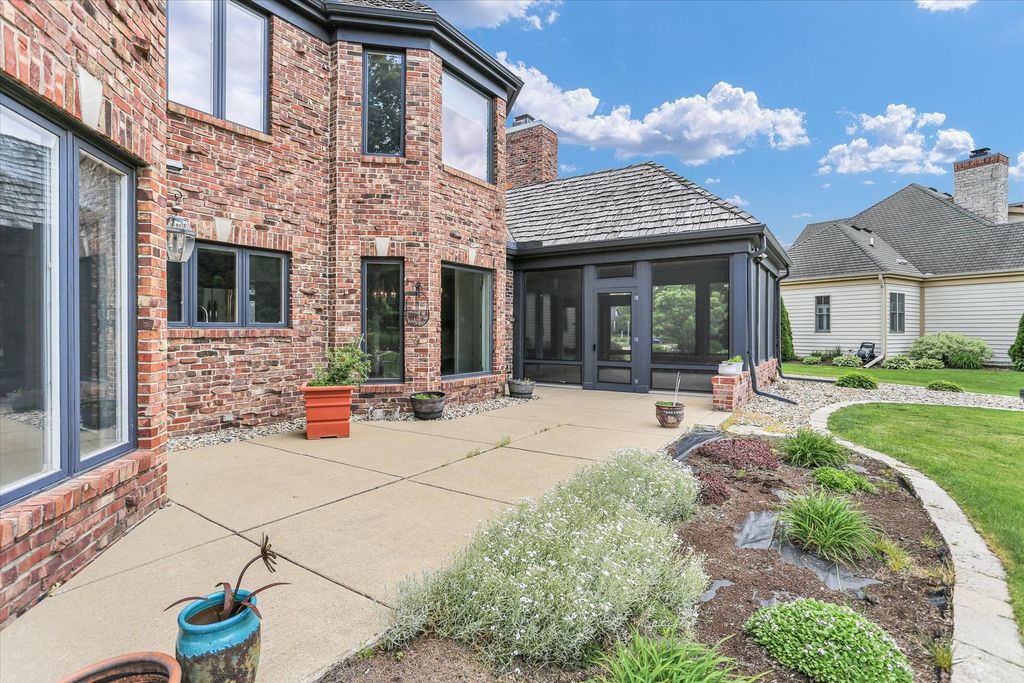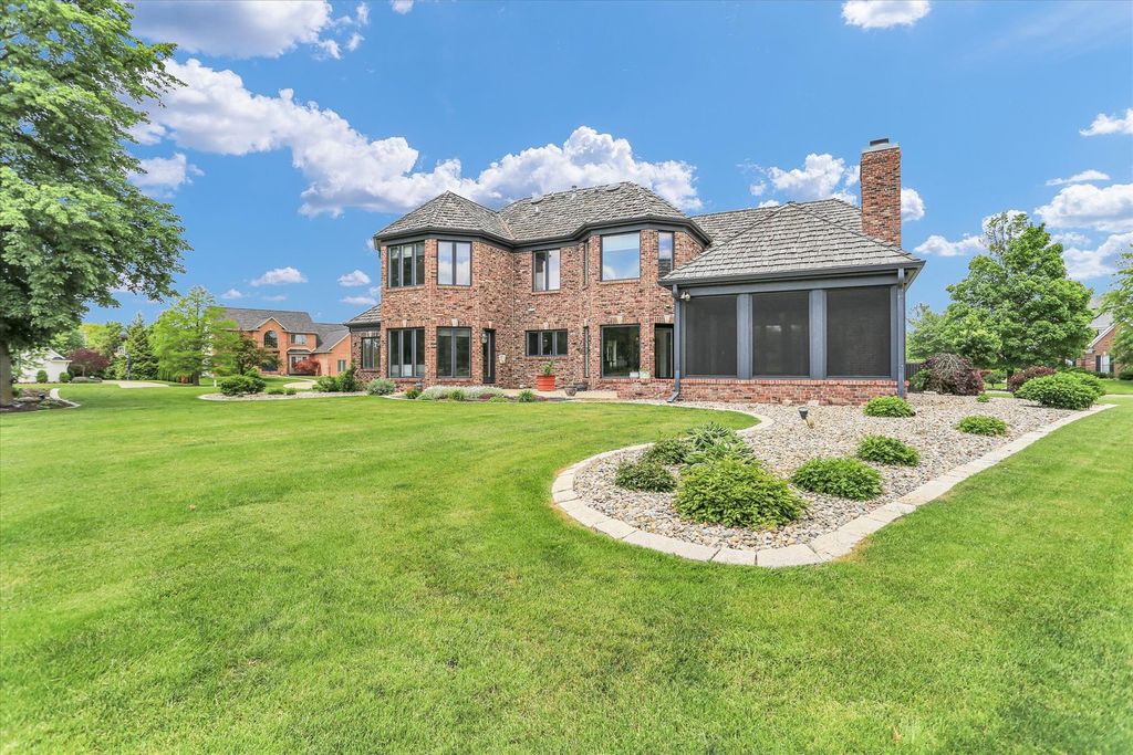 Experience unparalleled luxury in this exquisite home, situated on the 17th tee of a prestigious Private Country Club. With breathtaking panoramic views, this custom-built, all-brick residence offers 5 spacious bedrooms and 4.5 bathrooms, including an elegant first-floor primary suite. Boasting superior craftsmanship, this home has thoughtful design elements that ensure both style and comfort. The expansive floor plan features a private living room with soaring cathedral ceilings, alongside a striking dining room highlighted by innovative window panels. Enjoy cooking in the chef-inspired kitchen with an island and breakfast nook that connects to the vaulted-ceiling family room, which is complemented by a wet bar and a focal point charming brick fireplace. Ideal for entertaining, the home offers a stunning screened porch with a custom wood ceiling that leads to an expansive patio, perfect for quiet evenings or outdoor gatherings. The first-floor master suite, with a wall of windows and direct access to the patio, offers a spa-like bath and a generously sized walk-in closet that meets all your storage needs. New flooring and all new paint. 2-HVAC units with zoned thermostats - 2021. Note this home has an irrigation system, invisible fencing for your furry friend and a security system. Low county taxes.