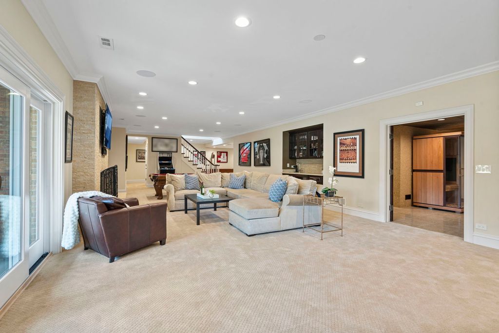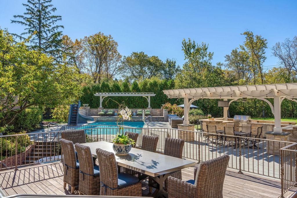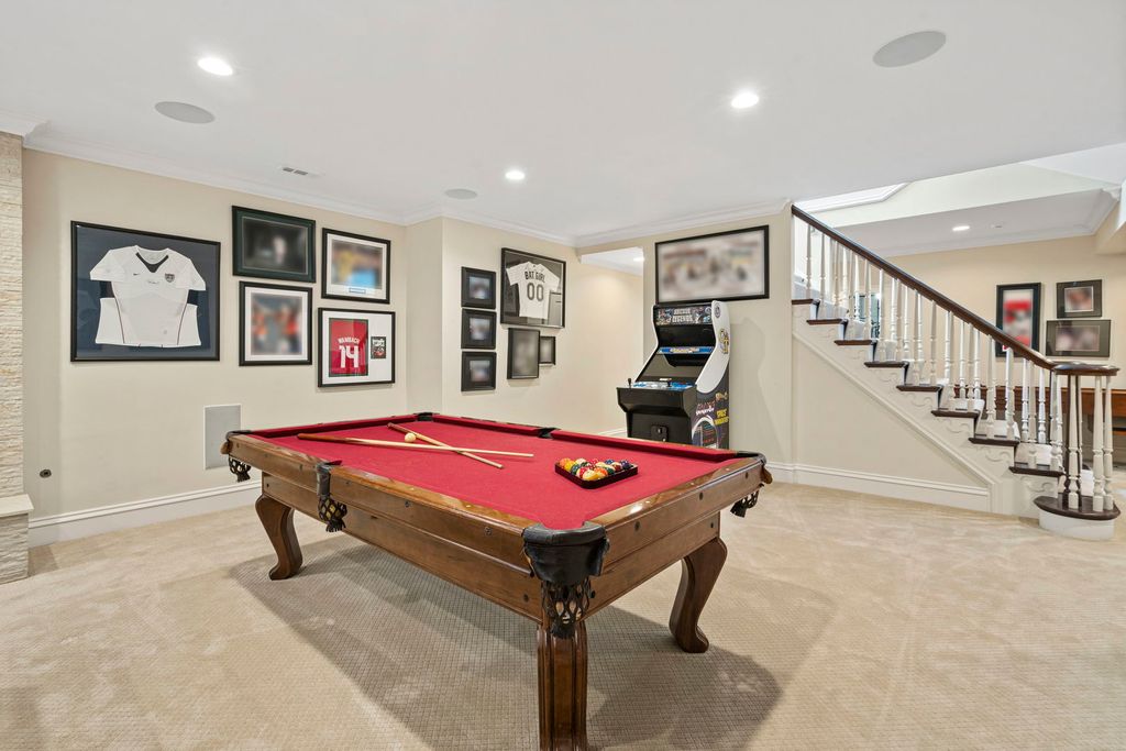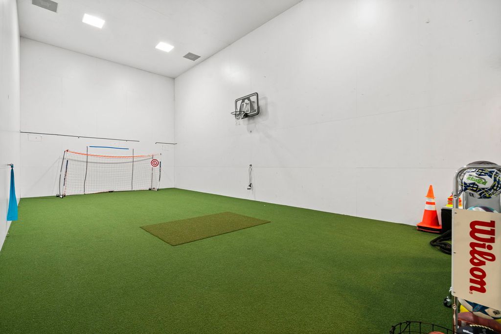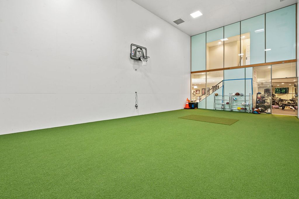 A true architectural masterpiece, this stately Tudor mansion-once owned by a Super Bowl-winning quarterback-sits proudly on 3 acres of manicured grounds. Blending timeless elegance with modern comfort, the home features a flowing floorplan rich in warmth, character, and superior craftsmanship. Step through the gracious foyer and be greeted by a dramatic staircase that sets the tone for the rest of the home. The impeccably designed formal dining and living rooms are a dream for any interior designer, offering sophisticated spaces for entertaining. At the heart of the home is a magazine-worthy gourmet kitchen, outfitted with custom solid wood cabinetry, an oversized center island, 6-burner Viking cooktop with griddle, Viking double ovens, Sub-Zero refrigerator, and dual dishwashers-perfect for hosting memorable gatherings. Just off the kitchen, a cozy family room offers a comfortable retreat for everyday moments. Step outside to your own private resort, complete with a fully equipped outdoor kitchen, multi-level entertaining spaces, a sun deck, heated pool, hot tub, and a putting green for the golf enthusiast. For convenience, laundry rooms are located on both the main and upper floors. Upstairs, the luxurious primary suite impresses with a gas fireplace, dual walk-in closets, and a spa-inspired marble bath featuring a soaking tub, separate shower, and dual vanities. All additional bedrooms boast ensuite bathrooms, including a unique "teenager suite" with a private loft-perfect for hanging out with friends. Enjoy movie nights in the state-of-the-art home theater with oversized seating, or head to the lower level for the ultimate entertainment experience. This expansive space features a wet bar, recreational areas, a fully equipped gym, and a serene spa with steam shower, sauna, and his-and-hers locker rooms. The piece de resistance? An incredible indoor sports court designed for pickleball, racquetball, basketball, or indoor soccer. This is more than a home-it's a lifestyle.