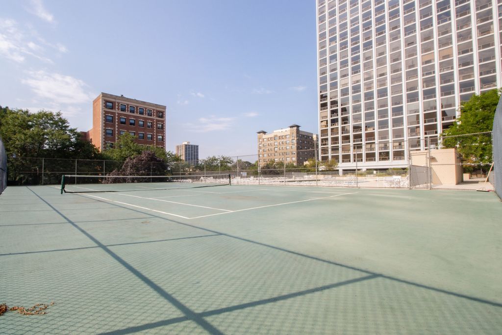 Beautiful one bedroom condo in the architecturally significant Boardwalk designed by architect Stanley Tigerman in Buena Park facing west in a secure building with 24-hour doorman, swimming pool, dry cleaner, tennis court and fitness center. Floor to ceiling windows in both the living, dining and bedroom let in abundant natural light. New Kahr's engineered hardwood floor throughout. New GE vent and range and freshly painted. Great location with easy access to Lake Shore Drive and public transportation. Assessments include heat, central air, basic cable and internet. Broker Owned