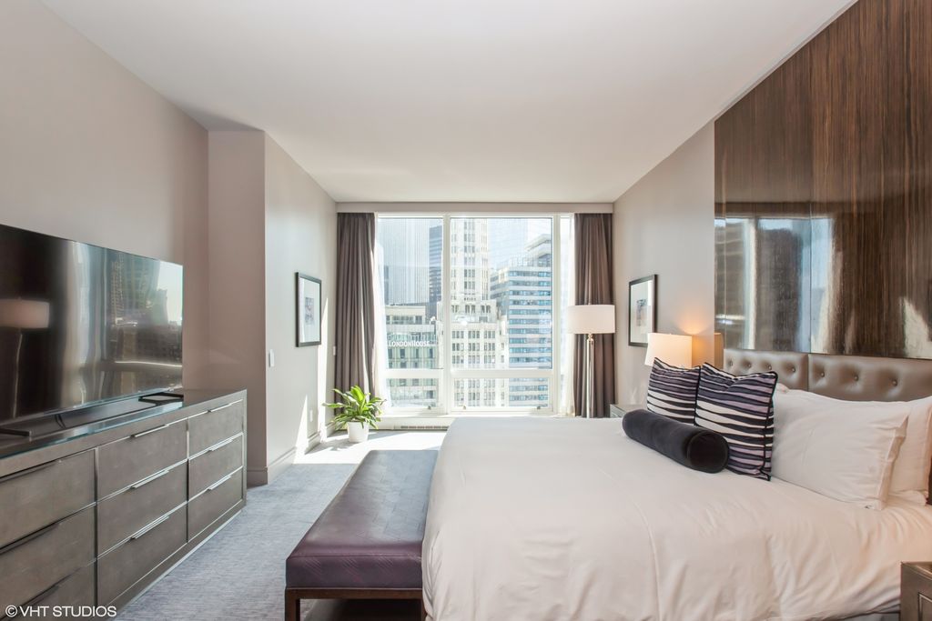 Rare opportunity to own an expansive 1-bedroom, 2-bathroom residence in one of Chicago's premier luxury buildings. This impeccably furnished unit boasts breathtaking water and city views, elevated by high-end finishes throughout. The spacious living and dining area flows seamlessly into a separate kitchen, while the oversized bedroom features a lavish spa-inspired bathroom. Enjoy exclusive access to Trump Hotel's renowned 5-star amenities, including white-glove services, a state-of-the-art fitness center, and the luxurious Trump Spa. A rental program option is also available, making this property an ideal choice for a corporate suite or an in-town retreat.