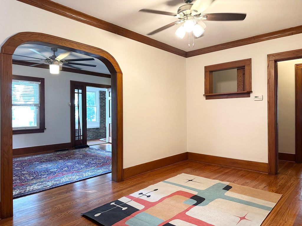 Historic Charm Meets Modern Comfort! This all-brick home is full of character and style, showcasing unique Art Deco details from the striking brick design on the front, to the eyebrow dormers and curved living room windows. Step inside the enclosed porch and be greeted by restored original light fixtures and a stunning wood entry door that leads you into the warm and inviting living room. You'll love the hardwood floors throughout, oversized baseboard trim, and the show-stopping Art Deco bathroom with double sinks. The kitchen is beautifully updated with all new stainless steel appliances (2025) * Granite counter-tops * New ceiling light * Large walk-in pantry. There is a separate dining room for your convenience. Each of the three bedrooms includes a ceiling fan and hardwood flooring. The attached garage offers much convenience. Downstairs, the full clean basement provides abundant storage and plenty of space for a family room or recreation area. Upstairs, a full staircase leads to the attic, providing excellent storage or the opportunity to finish. Other updates * Brand-new furnace & A/C (2025) * Water heater (2021) The backyard is fenced along the sides and rear, perfect for entertaining. Call today to schedule your private showing.This charming home is ready for you. Agent owned.