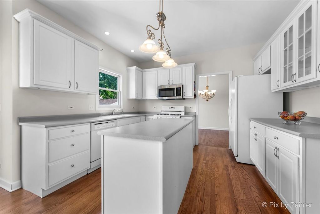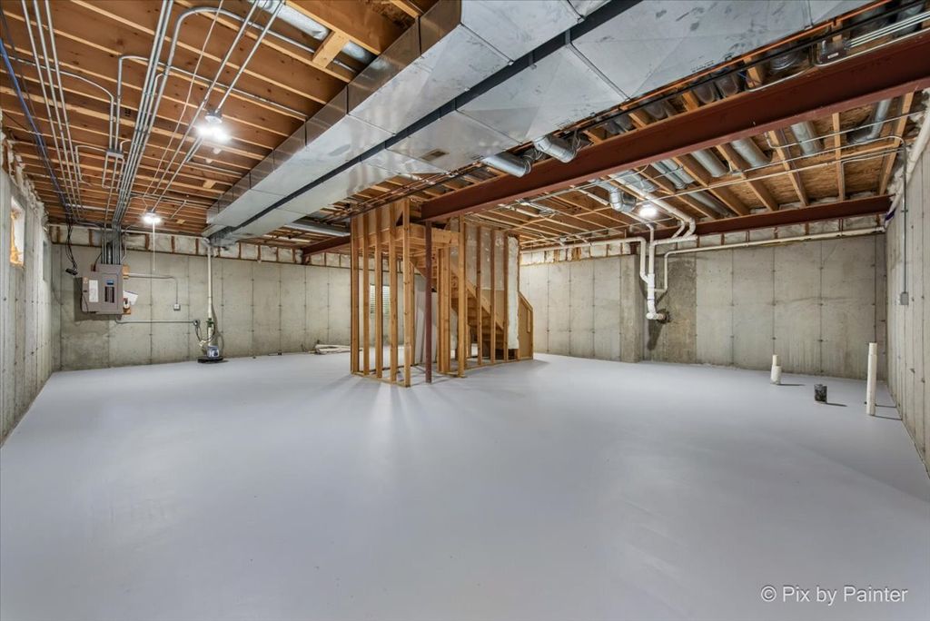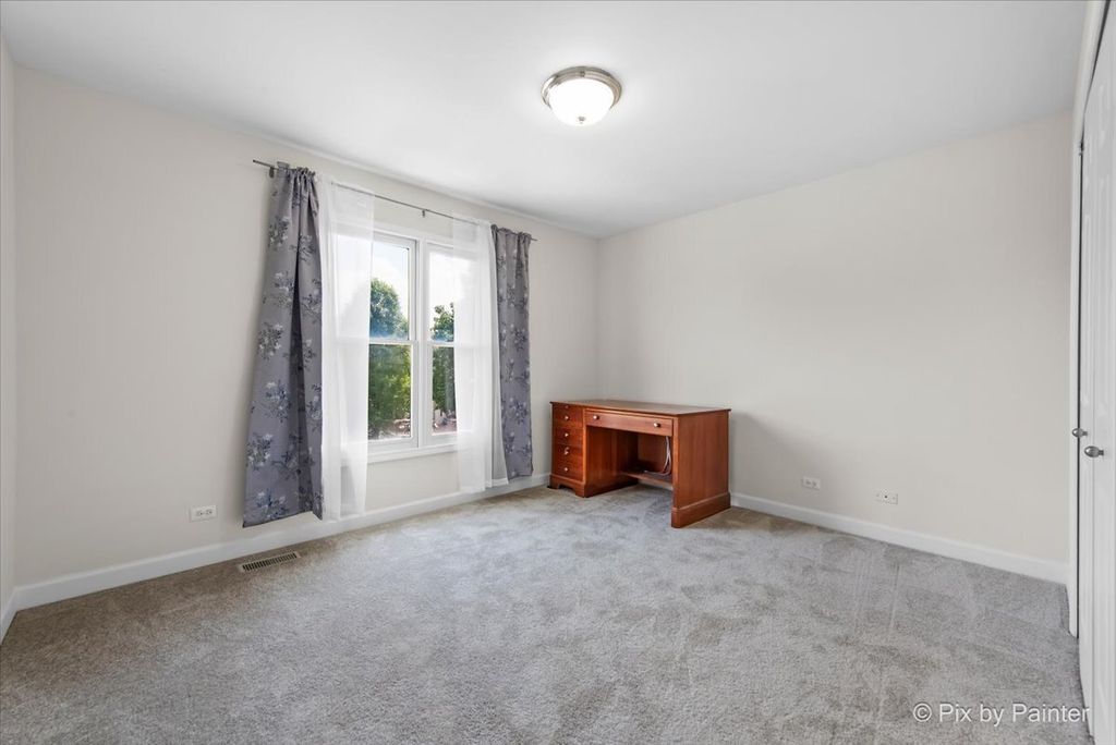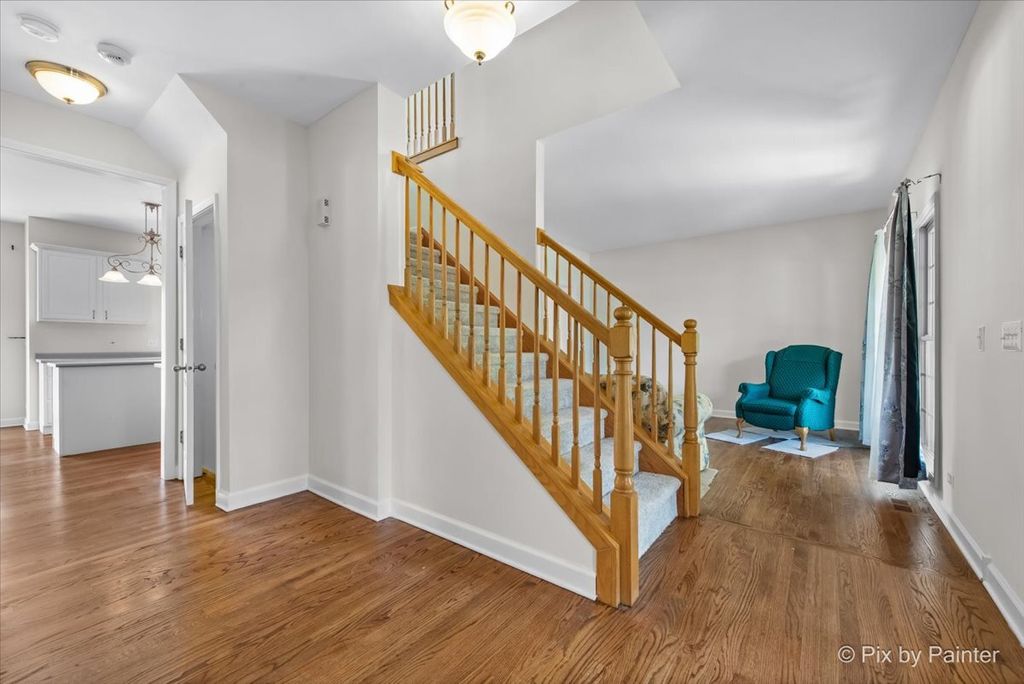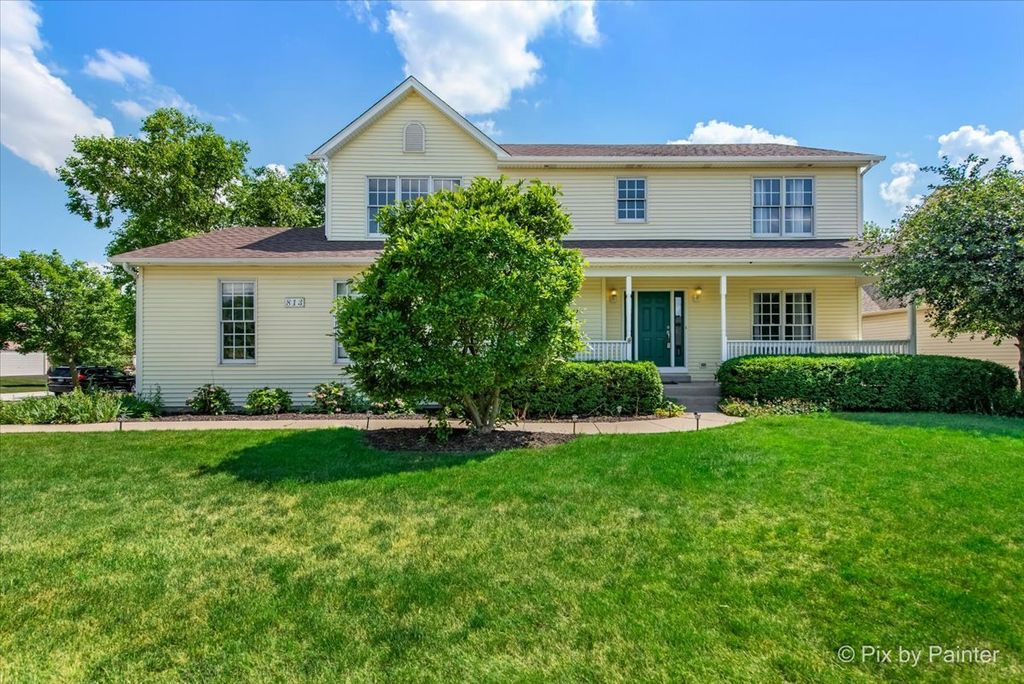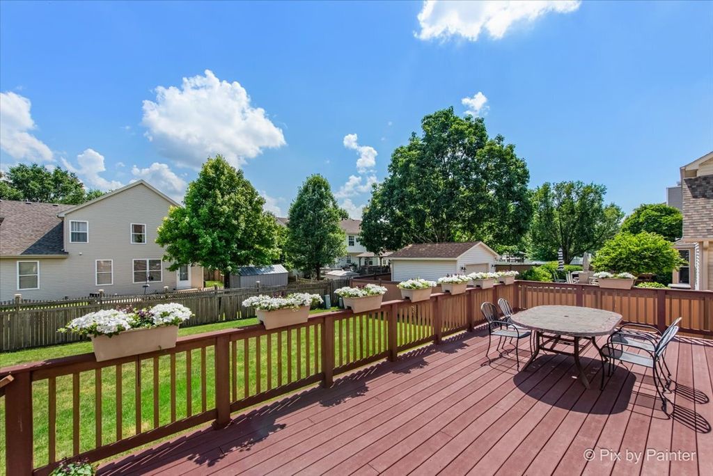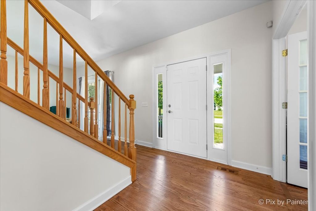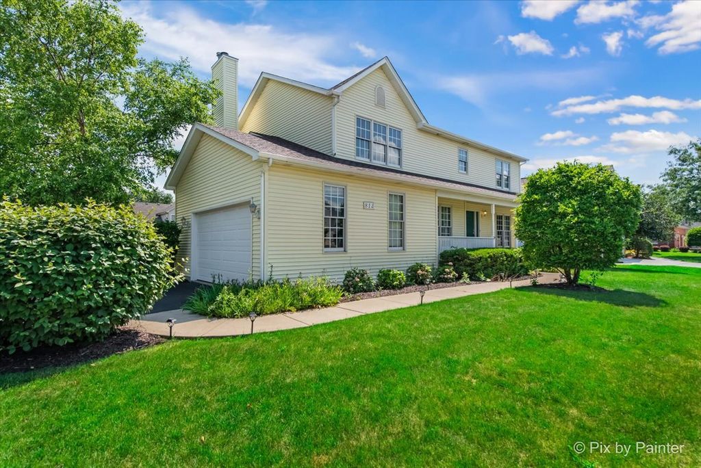 Don't miss this spacious and beautifully updated 4-bedroom, 3-bathroom 2-story home situated on a desirable corner lot! Step inside to find a freshly painted interior and brand new oak hardwood flooring throughout the main level. The first floor offers a flexible layout with a formal living room, dining room, eat-in kitchen, cozy family room with a gas fireplace, and a versatile bedroom or office space. Upstairs, enjoy all new carpeting, three generously sized bedrooms, and a large rec room that can easily be converted to a 5th bedroom. The luxurious primary suite is over 30 feet wide and features dual walk-in closets and a private en suite bath. Second-floor laundry adds everyday convenience. The full basement with 9-foot ceilings and a rough-in for a future bathroom is ready for your finishing touches. A sliding glass door off the kitchen leads to a beautiful deck and backyard-perfect for outdoor entertaining. The attached 2-car garage provides plenty of storage. Major updates include: **New roof (2021), HVAC (2020),** and more. Ideally located near top-rated schools, the public library, aquatic center, scenic green trails, shopping, dining, and easy access to major expressways. This move-in ready home checks all the boxes!