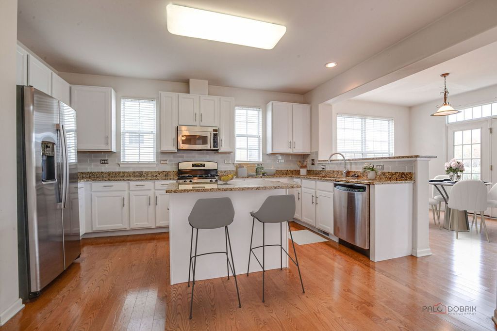 WELCOME TO YOUR DREAM HOME! This stunning 3,700 sq ft, 4-bedroom, 2.5-bath beauty is nestled in a highly sought-after neighborhood in the Gurnee School District and sits on a premium lot backing to a beautiful golf course and tranquil water views where fences are not allowed, preserving the open, picturesque scenery.Step into a grand two-story foyer with a dramatic double staircase and soaring living room that exudes elegance and space. The warm, inviting family room features hardwood floors and a cozy fireplace, while the formal dining room and private first-floor office offer functionality and charm.The spacious kitchen overlooks a peaceful backyard pond and opens to a serene patio through French doors, perfect for relaxing or entertaining while enjoying the stunning golf course and water views. Upstairs, the luxurious primary suite features a spa-like jacuzzi tub, and generous secondary bedrooms offer comfort and privacy. Additional highlights include a convenient main-level laundry room, a three-car garage, and an unfinished basement with endless potential. Enjoy access to a fabulous clubhouse with a pool, scenic walking paths, playgrounds, parks, and a nearby golf course. With premium golf course and water views that create a breathtaking natural backdrop, this home offers both beauty and tranquility. Don't miss this rare opportunity. Schedule your private showing today!