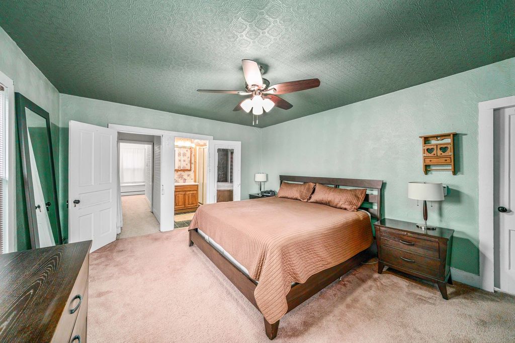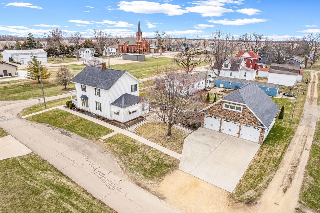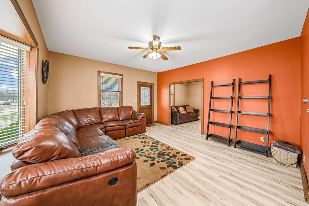 GARAGE LOVERS ALERT!!! Stunning Updated 3-4 Bedroom Home on a Corner Lot with Spacious HEATED, COOLED, FINISHED Garage & Loft! Move right into this VERY CLEAN, beautifully updated 3-bedroom, 2-bathroom home with a possible 4th bedroom option, situated on a desirable corner lot! This open-concept home features a modern kitchen with abundant cabinetry, a breakfast bar, and freshly updated flooring and paint throughout the main level. The main floor includes a den/optional bedroom, a full bath, and a seamless flow between the living room, dining area, and kitchen. The primary bedroom serves as a private retreat, complete with a full en-suite bathroom for added comfort and convenience. A unique bonus is the vintage shower space in the basement, adding extra functionality to this charming home. Enjoy peace of mind with updated wiring, windows, and an on-demand water heater, providing efficiency and reliability. Step outside to a gorgeous paver patio and paver sidewalk leading to the garage, perfect for outdoor gatherings and easy access. The property also features an extra-wide concrete driveway, providing ample parking space. The newer 32' x 33' three-car garage is a standout, boasting a BRAND-NEW forced air furnace and central air, plus a dedicated workspace. Above the garage, you'll find a spacious, fully finished loft, ideal for a game room, man cave, or entertainment space, complete with extra storage. Located in a quiet small town within the Mendota school district, this home is truly move-in ready. Don't wait-this gem won't last long!