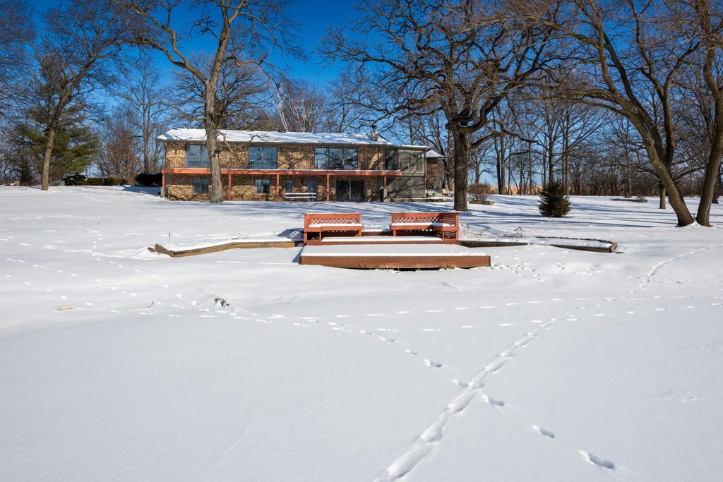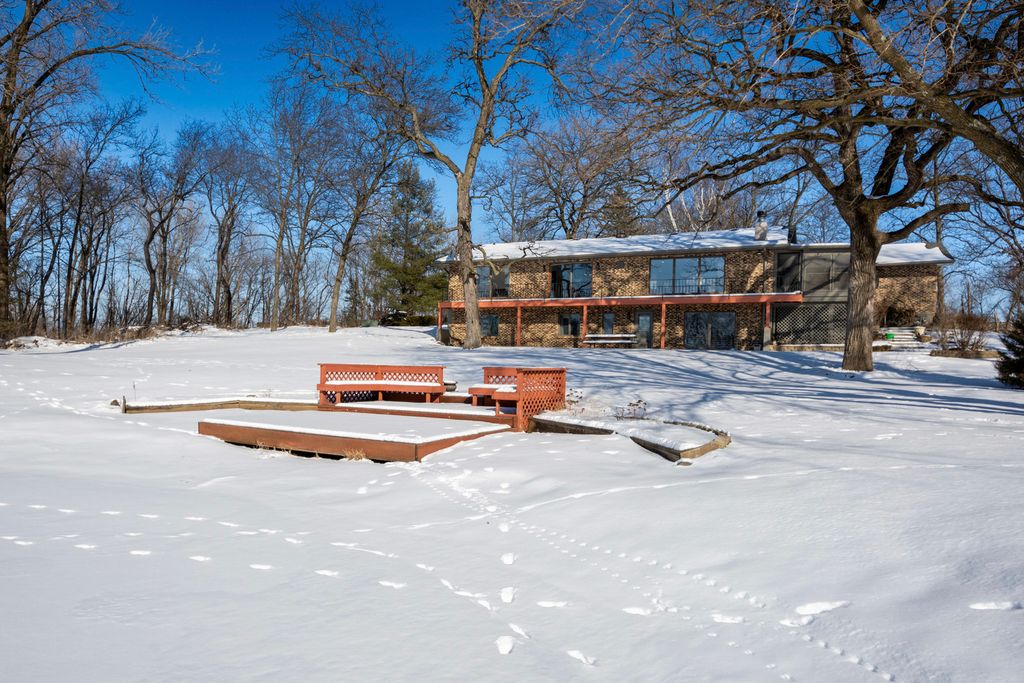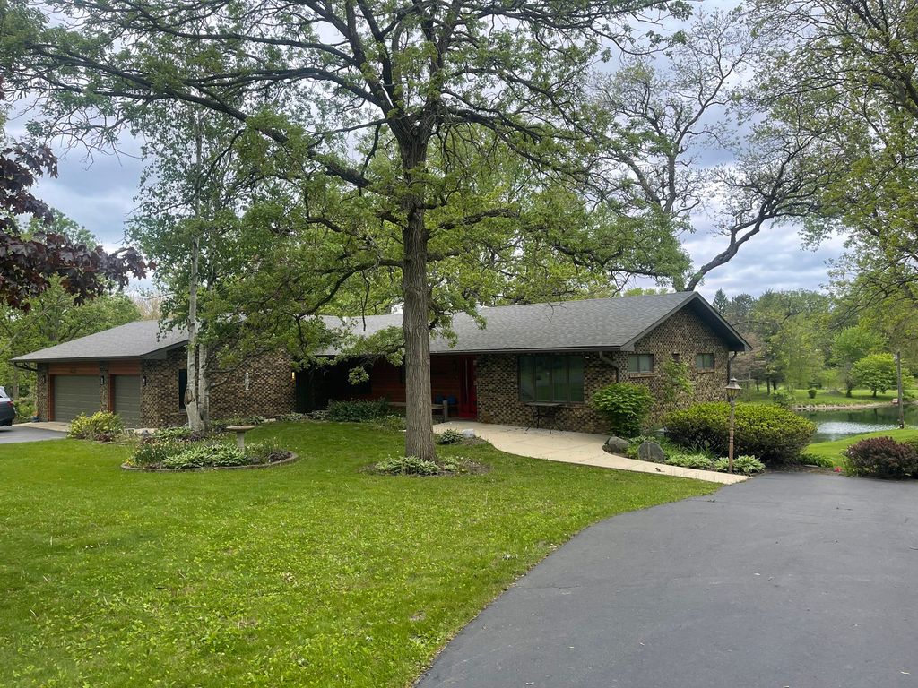 MOTIVED SELLER! STUNNING 5-ACRE ESTATE WITH PRIVATE POND AND BREATHTAKING VIEWS! Experience the ultimate tranquility and outdoor living with this exceptional property. Nestled in a picturesque, park-like setting, this 5-acre estate boasts a serene 3.5-acre pond perfect for fishing, kayaking, paddle boating, bird watching, and more! In addition to the private pond, the property boasts river frontage of the winding Nippersink Creek just steps away from a 520 acre conservation park offering miles of nature walking nature trails. This charming brick ranch home offers low- maintenance living, with a durable all-brick exterior and vinyl-clad windows. Enjoy panoramic views of the pond and lush surroundings from the expansive wrap-around deck or relax in the screened porch, ideal for hours of outdoor enjoyment. Step inside to an updated, open-concept floor plan featuring a modern kitchen with granite countertops, stainless steel appliances, and a convenient breakfast bar. The walkout basement provides even more living space, including a cozy family room, two additional bedrooms with stunning pond views, a recreation room, full bath, utility room, and abundant storage. The property is a nature lover's dream, with landscaping that blooms beautifully in the spring and summer with unbelievable panoramic winter views of snow blanketed mature oak and shag bark hickory trees. Additional features include easy access to nearby amenities like The Ice Age Trail, schools, a ski hill, the Chain O' Lakes, shopping, dining, concerts, walk or bike ride to downtown Richmond, Glacial Park, or just a 12 minute ride to Lake Geneva, WI, and more! Don't miss the chance to own this one-of-a- kind retreat-schedule your private showing today!