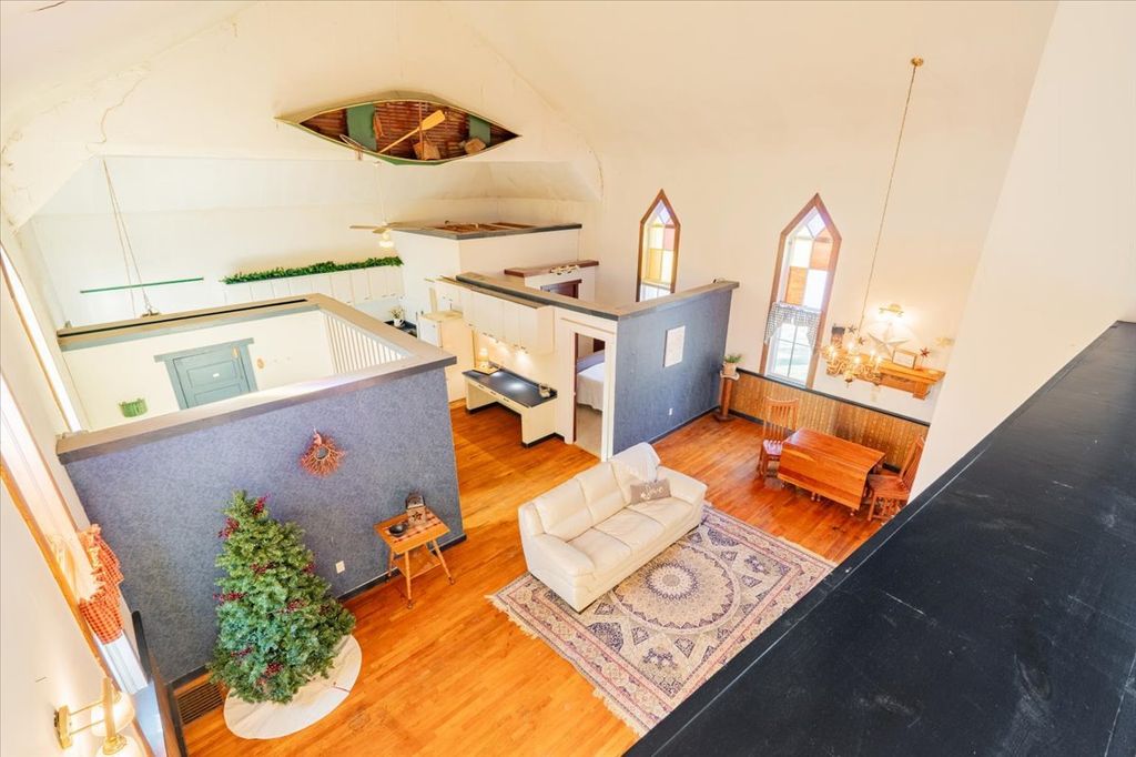 Historic Charm Meets Modern Living! Step inside the beautifully converted Old Cumberland Presbyterian Church in DeWitt, IL - a one-of-a-kind property that blends history, character, and comfort. This spacious home features two main-level bedrooms, plus a loft suite with potential to divide into a third and fourth bedroom. The partially finished basement adds even more flexibility, offering a large family room, second bathroom, and an additional room perfect for guests, office space, or hobbies. Natural light fills every corner thanks to the original stained glass windows, casting colorful warmth across the timeless hardwood floors. High ceilings and open spaces maintain the church's grandeur, while thoughtful updates provide all the conveniences of modern living. Located just minutes from Clinton Lake's boat launch and beach, this home is a dream for outdoor enthusiasts who love boating, fishing, and exploring nature. Whether you're seeking a primary residence, a weekend retreat, or a truly unique investment property, this historic gem offers endless possibilities. Don't miss your chance to own a piece of DeWitt County history - schedule your private tour today!