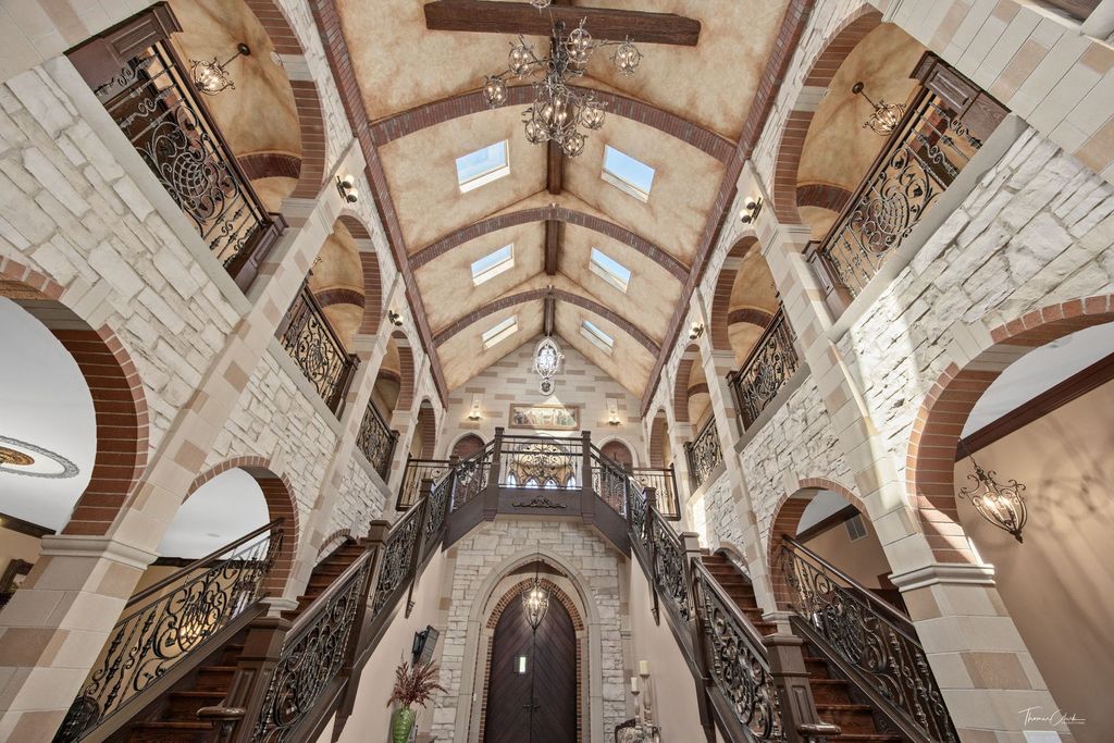 This stunning castle boasts beautiful details throughout its impressive interiors. Designed like a fortress because it is a fortress , the entrance is eye-catching, with incredible stone and brickwork, thick 18-inch walls, and strong 12-inch floors that provide both soundproofing and a touch of elegance. You'll find charming imported wrought iron, an elegant billiard room, five complete suites, an elevator, cozy radiant heated floors, and plenty of space for entertaining guests. Spanning 12,000 square feet of top-notch quality, the lower level features a game room, a theater, a workout area, a wine cellar, and a bar. Plus, the rooftop is ready for a deck, adding to the castle's impressive charm. Nestled in the vibrant heart of Oak Brook, this property is perfect for buyers seeking to personalize their unique residence. With exceptional construction in brick, cement, and stone, the grand room boasts a stunning 40-foot ceiling and 12 skylights that brighten an indoor courtyard. Additional highlights include three full-size fireplaces and five bedrooms, including a spacious master suite, all complemented by an elevator for convenience. This extraordinary castle promises a refined lifestyle for those who truly appreciate exceptional homes.