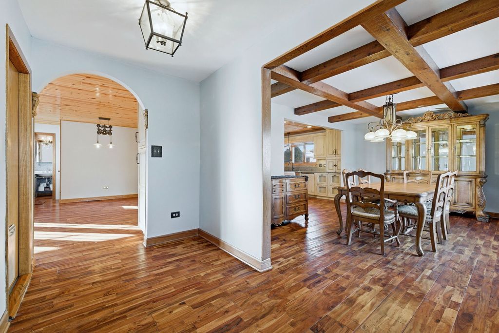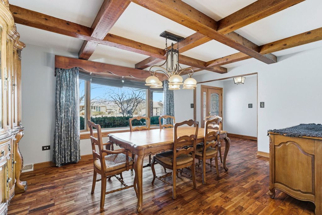 A custom 3-step brick ranch in one of Palos Park's most desirable neighborhoods, this beautifully remodeled home is move-in ready. Hardwood flooring and six panel doors throughout.The main level offers an open, thoughtfully designed floor plan with Brazilian hardwood floors, coffered ceilings, and abundant natural light, ideal for both everyday living and entertaining. The gourmet kitchen is a standout, with extensive counter and storage space, two sinks, high-end Shiloh custom cabinetry, a skylight, and premium Thermador appliances. For the serious home chef, the kitchen features a 48" Thermador Pro Grand dual-fuel range with six burners, an induction griddle plate, and a large 4.9 u. ft. oven, a secondary steam/convection oven, and a warming drawer. Additional highlights include a commercial-grade vent hood, 1200 CFM roof-mounted blower, 42" counter-depth Thermador refrigerator, and matching dishwasher. The kitchen opens to the family room anchored by a fireplace. The primary bedroom suite includes an en-suite bath with a solid teak sink, while the updated hall bath serves the remaining bedrooms. The finished basement adds flexible living space with a partial office setup ideal for remote work Outdoor living is equally impressive, with professionally landscaped grounds, a fenced backyard with patio, shed, fountain, and ten raised garden beds-perfect for vegetables, plants and herbs. Major updates include a new roof, fencing, siding, and windows all in 2020 and upgraded electrical (100 to 200 amps). Located in unincorporated Palos Park with a lower tax base, near shopping, trains, forest preserves.The home is served by top rated schools including Palos West, Palos South, with the high school option zone at Staqg or Sandburg.