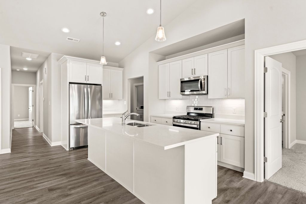 READY NOW! Our custom-built paired villas boast 3 spacious bedrooms, one with a flexible office setup. Open concept great-room, large kitchen island, stainless steel appliances, and premium Silver Line windows that fill the 1500 square feet of living space with natural light. This Custom-Built paired Villa is packed with quality finishes, and future pre-sold units offer plenty of selections for owners who want a more customized home. Finished homes include Luxury Vinyl Plank in the Great Room and Kitchen, Tiled Bathrooms, and Carpet in the Bedrooms. Kitchen has Quartz Countertops, soft-close cabinets and drawers, stainless steel kitchen appliances, laundry room with washer & dryer included, Ceiling Fans in all Bedrooms and Great Room, Rubbermaid closet shelving, and stone masonry accents. Also includes 80percent Carrier Furnace, 14 Seer A/C, and 40gal hot water tank. You'll appreciate the comfort of a finished, insulated garage, & the convenience of an over-sized covered back patio. Designed for a carefree lifestyle, these maintenance-free homes offer the perfect blend of comfort and sophistication. Residents of The Arbors are also invited to enjoy the Community Clubhouse, and outdoor pergola on the maintained pond. Furnished room photos and virtual tour are from our staged sales model with the same layout.
