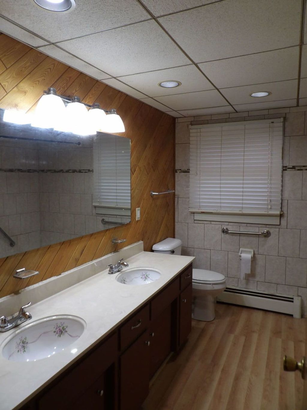 Large brick Ranch style home with beautiful stone fireplace in Livingroom. Hardwood floors, Two large bedrooms on main level with hardwood floors and two full baths. Additional bedroom and family room in finished basement . New roof (3/25) and spacious rear yard with rear deck and two storage sheds. Bring your decorating ideas. Close to shopping and transportation. Sold as is. Short sale.