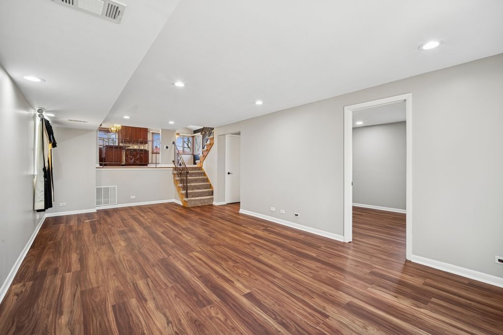 All brick with a modern Open Concept with high ceiling, new led recessed lights and Fireplace. Stunning Custom cherry cabinet kitchen with Granite Counter-tops with an oversized Island. Top of The Line Stainless Steel Appliances (Thermadore, Viking, Bosch). Updated baths; upper bath with Whirlpool tub; lower bath hotel style with custom glass shower stall with seat & triple spray shower heads. New floors and windows throughout. Updated 200 amp electric service, all new leviton outlets and Hi Efficiency Trane Furnace with Nest Thermostat & Air Conditioning. All new landscaping, vinyl privacy fence and smart garage. Current property taxes have no exemptions for discounts
