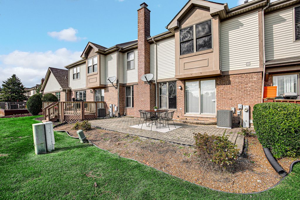 Lovely and spacious 3 bed / 3.5 bath townhouse with over 2,400 sq ft spread across 3 levels in the highly sought-after gated community of Odyssey Country Club. Perfectly situated on a quiet cul-de-sac, this home offers serene privacy with no backyard neighbors and peaceful golf course views. The main level features a separate living room with a cozy fireplace, a formal dining room, and a bright kitchen with sliding doors that open to a brick paver patio; ideal for relaxing & grilling with a tranquil backdrop. A convenient laundry room, half bath, and access to the attached two-car garage complete this level. Upstairs you'll find three spacious bedrooms, including a primary suite with a large bath featuring a walk-in shower and double sinks. The fully finished basement provides even more living space with a huge rec/family room, full bathroom, plus a bonus room perfect for a home office, storage or even a 4th bedroom. New furnace and AC installed in 2024.