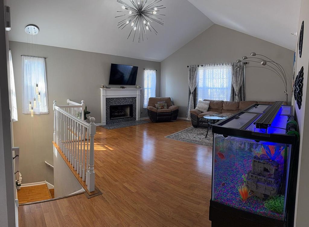 This popular Lakewood Village 2nd floor ranch unit is FULL SMART HOME! controlled by amazon Alexa ,you can control by voice/ phone all the home lights, garage door, security cameras , camera doorbell, TV , stove , dishwasher, refrigerator, dryer ,washer, front door smart lock ,smart bathroom fan ,3 years ago was full renovated the following; main room carpet, designer ceiling lights, (living room light worth 5k) smoke/ carbon detector, kitchen backsplash, kitchen floor, kitchen granite countertop, kitchen dish soup dispenser, kitchen garbage disposal, kitchen reverse osmosis system water filter system/ with smart faucet, bathroom vanity white granite sink, luxury toilet. all the outlets were replaced with surge protector/usb charging ports, every knob, door hinges, door locks were replaced, new fireplace tile, you named, all replaced/renovated by quality parts! 3 years old kitchen stain steel appliances. 3 years old dryer and washer. Ready to move! Low association, they take care of roofing, siding, exterior paint, cut grass, snow removal, well maintained the Nationhood by the association, private lake/ park for the neighborhood, 5 min driving to mall, clothes stores/ restaurants, close to schools, one of the best townhome areas definitely.!