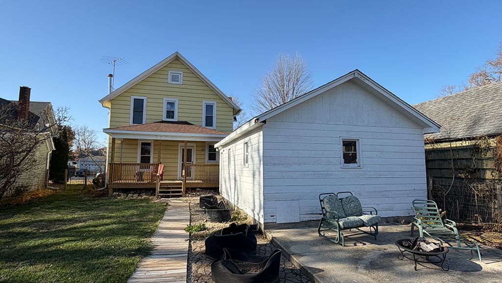 Step into a home brimming with unique charm and timeless character. You're greeted by original wood floors, elegant millwork, and a stunning staircase that showcases the home's vintage personality-complete with a vibrant stained glass window and decorative stair risers that add a splash of artistry. The kitchen is full of eclectic style and function, with a classic farmhouse sink, subway tile backsplash, custom butcher block counters, and a cheerful mint green island that doubles as added prep and display space. Industrial-style lighting and checkerboard floors bring in a playful retro flair while keeping the space practical and inviting. Adjacent to the kitchen, the dining area features a bold mix of textures-wood floors, a partially exposed plaster wall, and deep, rich wall colors that give the space warmth and depth. The built-in breakfast bar connects the kitchen to the dining room, perfect for casual meals or entertaining. Vintage charm continues with the detailed wood trim and classic chandelier lighting, offering a perfect blend of old-world elegance and modern creativity. This home tells a story in every room-a perfect choice for anyone who appreciates character, craftsmanship, and a space that feels truly one-of-a-kind. This home offers space galore-both inside and out! With four spacious bedrooms upstairs and the potential to create a fifth on the main floor, there's room for everyone. The basement includes an additional bathroom. You'll fall in love with the character and charm throughout: pocket doors, intricate woodwork, a grand open staircase, stained glass window and vintage-style phone nook. A centrally located woodstove not only adds cozy ambiance but can efficiently heat the home during the winter months. Outside, enjoy the brand new amish built deck as well as, a fenced-in backyard with a serene pond, perfect for catching glimpses of fish and frogs-fun for both kids and adults! Fresh rock has been added around the pond area, enhancing its beauty and usability. The current yellow siding is energy-efficient and easy to paint if you're ready for a new look. Fresh white paint on the exterior this fall. Plus, the owner has made numerous recent upgrades, and all appliances are included-making this home truly move-in ready. History and list of updates available. Seller offering closing credits for the month of December.
