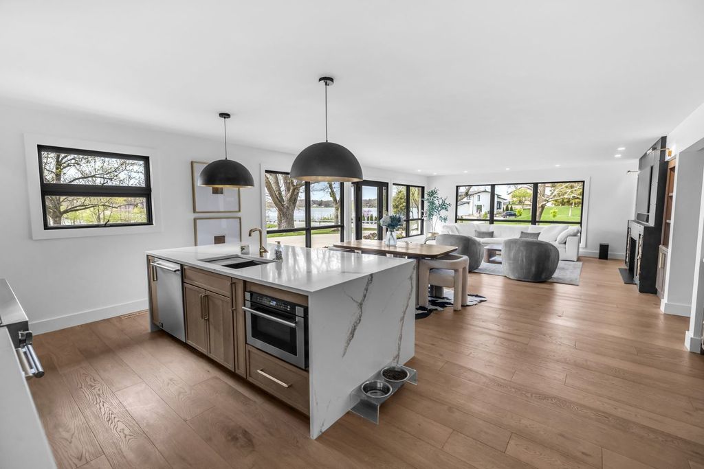 Described by the designer as 'Refined Rustic Modern', this luxurious home balances natural elements with elegance. A turnkey lifestyle truly awaits at this picturesque wooded property leading down to Lake Decatur! Outside, you will find an abundance of activities including: brand new basketball/pickleball court and hoop, side by side trails, new boathouse and cedar dock construction that is almost complete with new boat lift and jet ski ports, new fully automated, heated, and low maintenance fiberglass pool system (can be used as a large hot tub in winter) with laminars and cleaning robot, all controlled by a phone app, concrete pool deck with custom turf pad, all new landscaping complete with Husqvarna Robotic Auto mower, and expansive views of the lake and sunsets every evening, truly a breathtaking panorama! River Pools awarded the Overall space with the Platinum Wave 2025 Design Award. This incredible transformation, brought to you by Clean Cut Painting and Handyman, will only astonish you further once inside. Fully furnished, this home boasts an incredible amount of natural light, a custom steel fireplace, built in custom cabinetry, custom slat walls with hidden doors, all new plumbing, mechanicals, fixtures, designer outlets/switches, new water heater, recessed wall returns, all new interior doors, trim, and hardware, fresh paint throughout, all new flooring, designer hardwood and large format tile, and new roof. The master suite overlooking the pool deck is incredibly breathtaking with its crystal chandeliers and pendants, towel warmers, digital shower controls, and exceptional walk-in closet. The kitchen is fully stocked with high-end stainless appliances, gold veined quartz countertops, and custom stone backsplashes and accent walls. This home is truly one of a kind! All furnishings were purchased from: Restoration Hardware, Arhaus, Pottery Barn, Pottery Barn Kids, Crate & Barrel, CB2, West Elm, Rejuvenation, Denver Modern, Revival Rugs, LG, Kohler, Forno, Ledge Lounger, and Storewall.