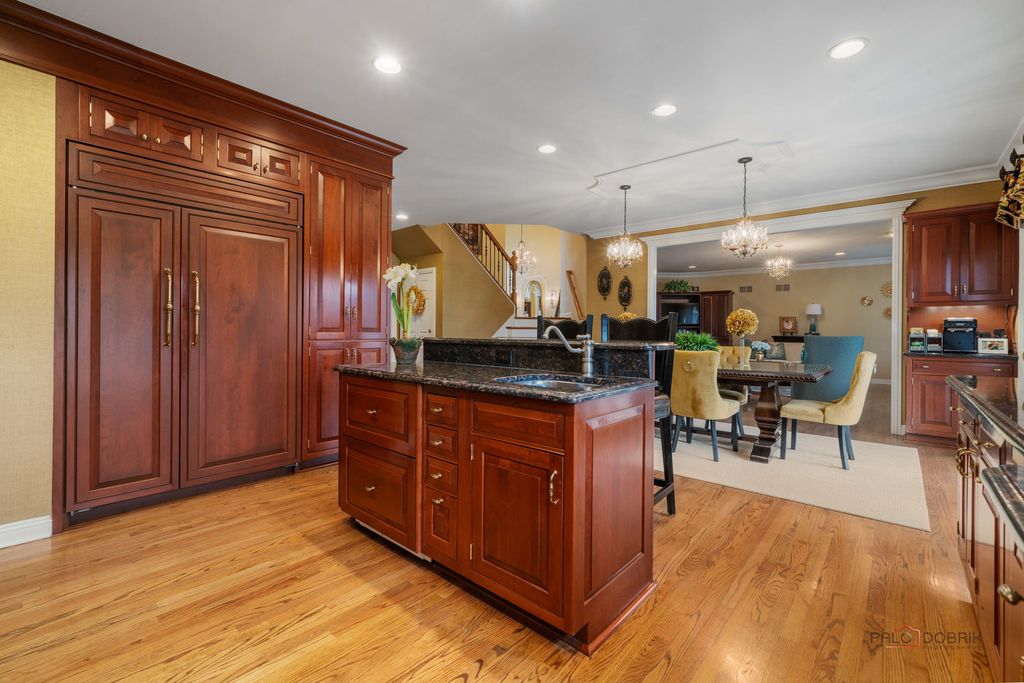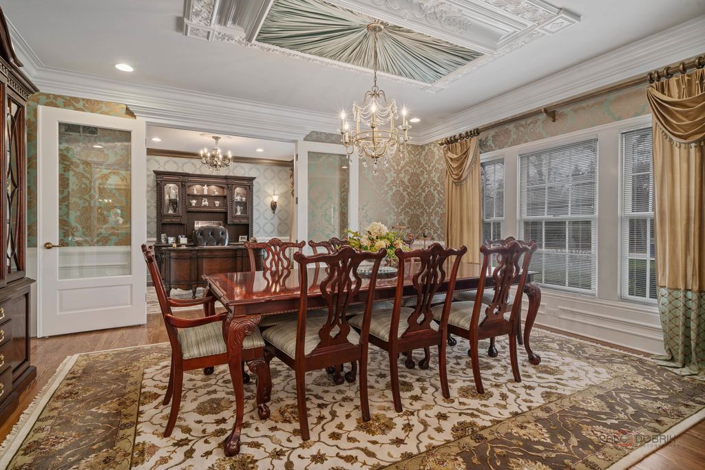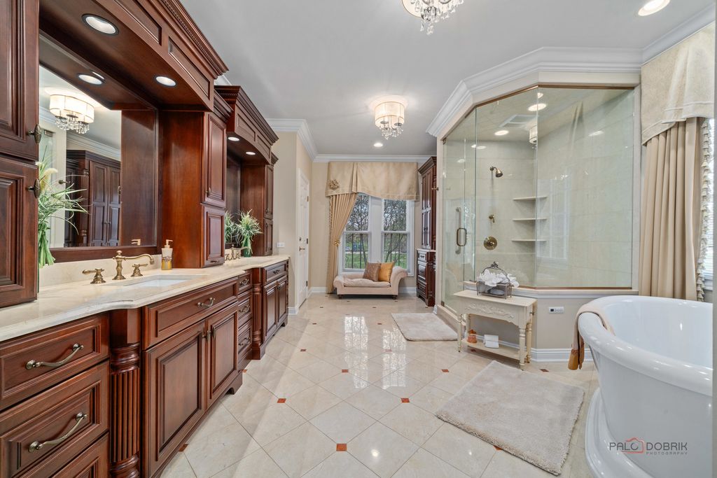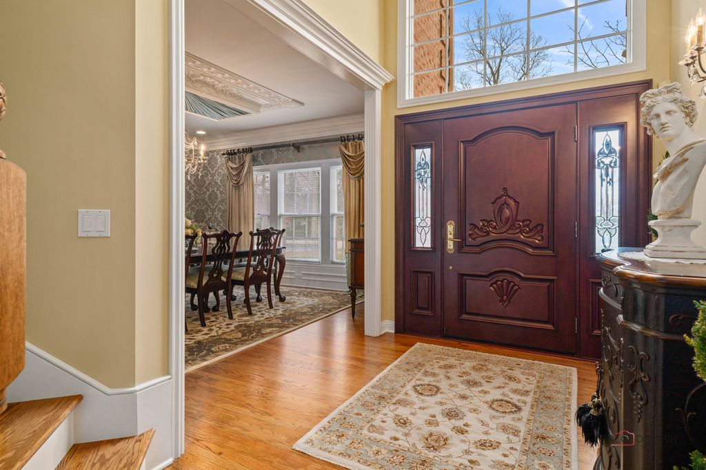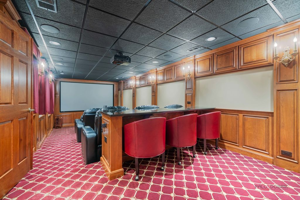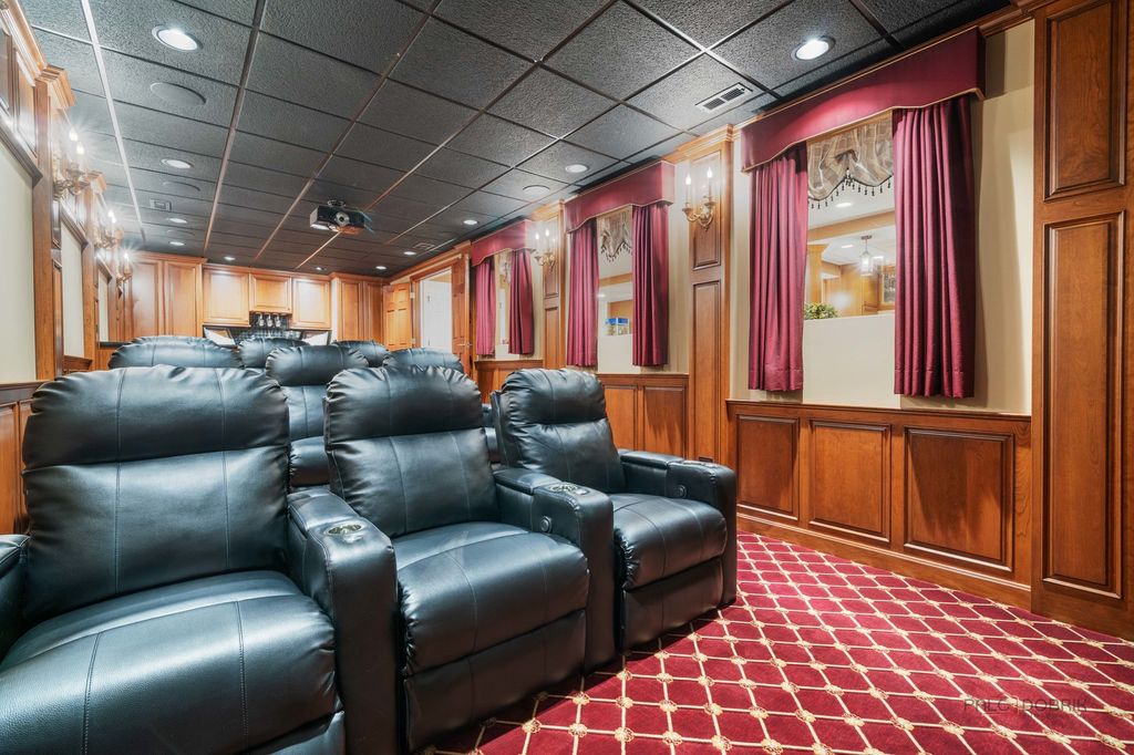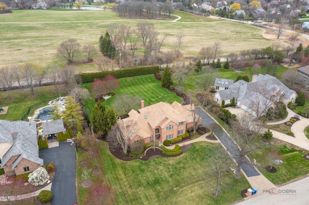 This extraordinary 5-bedroom, 4 full and 2 half-bath Brick Georgian estate redefines sophistication, offering top-tier elegance and modern functionality at every turn. From the moment you enter the grand two-story foyer, the home's elevated design and impeccable attention to detail become immediately evident-anchored by richly finished hardwood floors, soaring ceilings, and designer lighting throughout. Just off the foyer, the formal dining room makes an unforgettable impression. Framed by intricate custom millwork and architectural detailing, this space is crowned by a breathtaking showstopper chandelier-an artful centerpiece that casts a warm, opulent glow for elevated dinner parties or holiday gatherings. It's a room where timeless craftsmanship meets contemporary glamour. The main floor also features a dedicated office, ideal for remote work or quiet study, and a sprawling family room complete with a gas fireplace, full wall custom wet bar, and seamless flow to the heart of the home-a gourmet kitchen. Outfitted with professional-grade appliances including a Viking range and Sub-Zero refrigerator, this kitchen was designed with both beauty and function in mind. A cozy coffee bar nook and informal dining area offer casual gathering spaces filled with light and warmth. The spacious laundry room tucked off the kitchen provides added convenience. The first-floor primary suite is a sanctuary unto itself, offering dramatic custom window treatments and serene views of the backyard. The spa-style en suite bath features dual vanities, a freestanding therapeutic tub, an oversized walk-in shower, a towel-warming drawer, and a secondary washer and dryer, all designed to create a private, luxurious experience. A generous walk-in closet completes the retreat. Upstairs, you'll find four additional bedrooms-including two oversized guest suites with secondary living areas and en suite baths. One bedroom is currently styled as a second home office, reflecting the home's flexible, thoughtful layout. Each bathroom is accented with custom finishes and fine materials, continuing the home's cohesive, upscale aesthetic. The lower level offers a true extension of the living space and is a destination in itself. Perfect for entertaining on any scale, the basement includes a spacious gathering lounge, a kitchenette ideal for crafts or casual serving, a game room large enough for a pool table and arcade games, and an incredible full bar/second kitchen with high-end finishes and plenty of seating. The crown jewel of the lower level is the private home theater, complete with tiered seating for 12 or more guests, immersive surround sound, and ambient lighting-bringing the cinematic experience home. Step outside into a backyard oasis designed for year-round enjoyment. A retractable pergola provides prefect coverage over the spa, while an oversized patio features both a full outdoor fireplace and a separate firepit area. The outdoor kitchen is equipped for serious entertaining, surrounded by beautifully manicured greenspace and mature landscaping that offers both privacy and tranquility. Additional premium features include a new roof, whole-house generator, 4-zone HVAC, state-of-the-art security system with license plate recognition, advanced underground drainage system, and epoxy-coated floors in the heated 3-car garage. The location is perfectly blended to provide peace and quiet, access to Independence Grove Forest Preserve, walking trails, downtown Libertyville, I-94, all within highly rated Oak Grove Elementary and Libertyville High School districts. This is more than just a home-it's a statement of elevated living, masterfully blending luxury, comfort, and functionality in every detail.